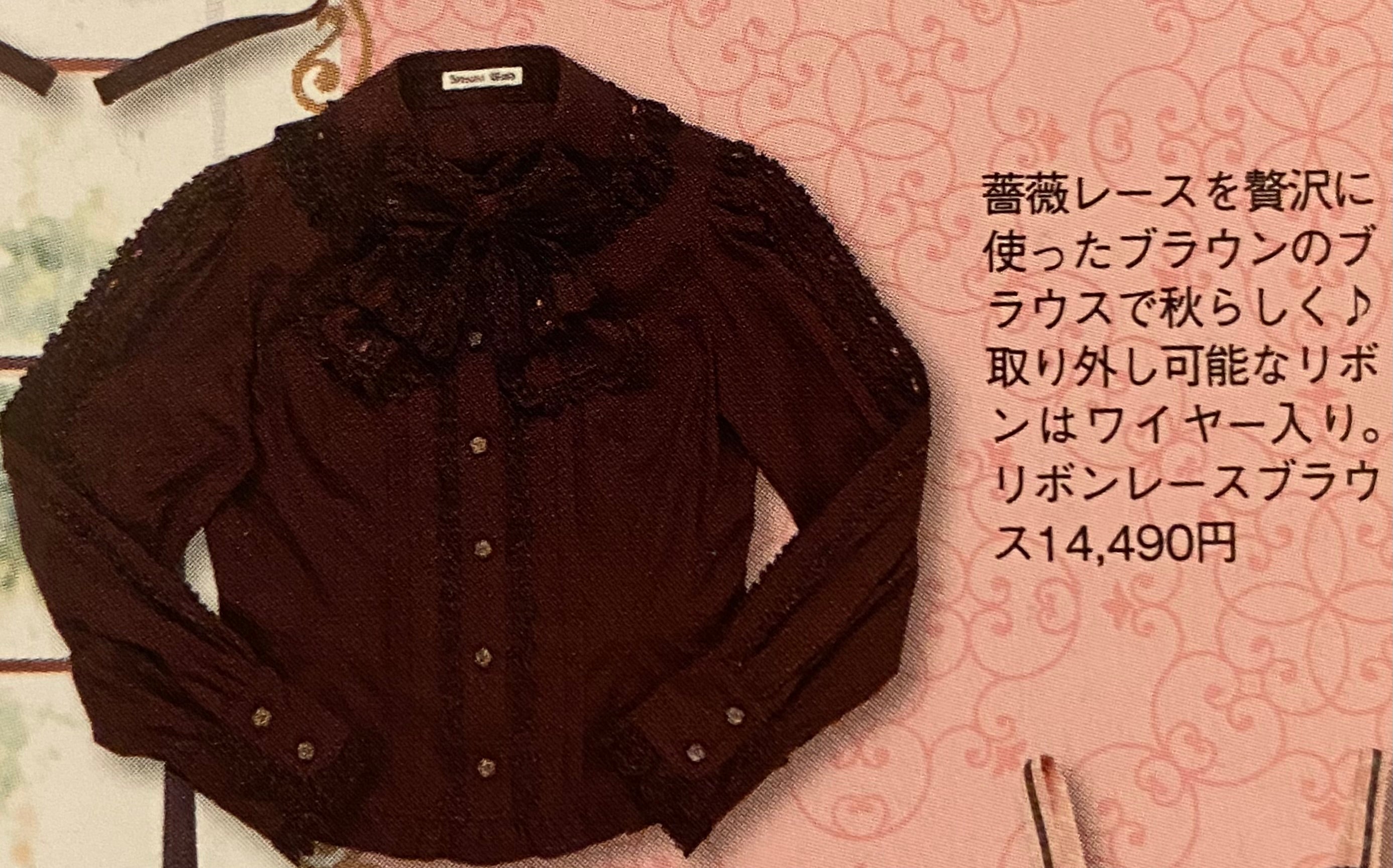 Featured in GLB vol 45 with comment: “Made with luxurious rose lace, this brown blouse feels like autumn ♪ The removable ribbon is wired.”