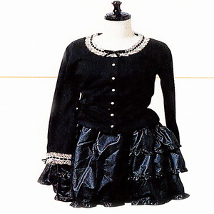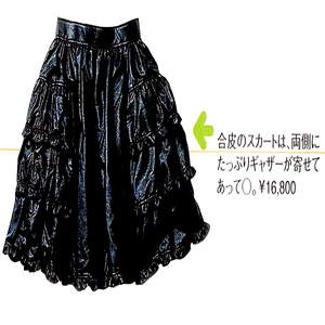 合皮のスカートは、両側にたっぷりギャザーが寄せてあって〇。
