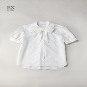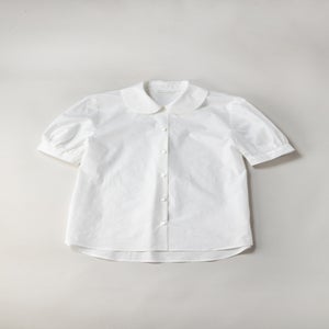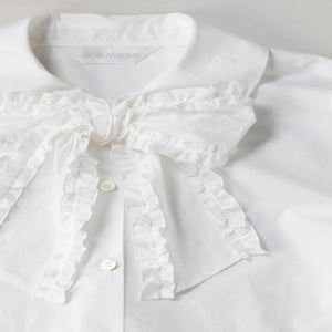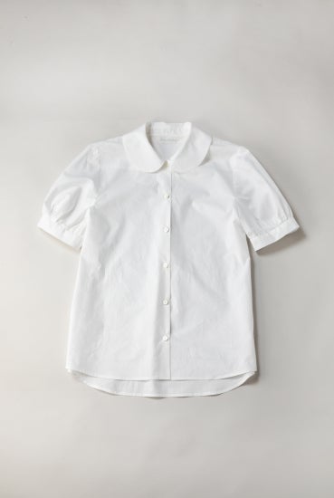A clean blouse around a clean shoulder and an elegant volume puff sleeve.