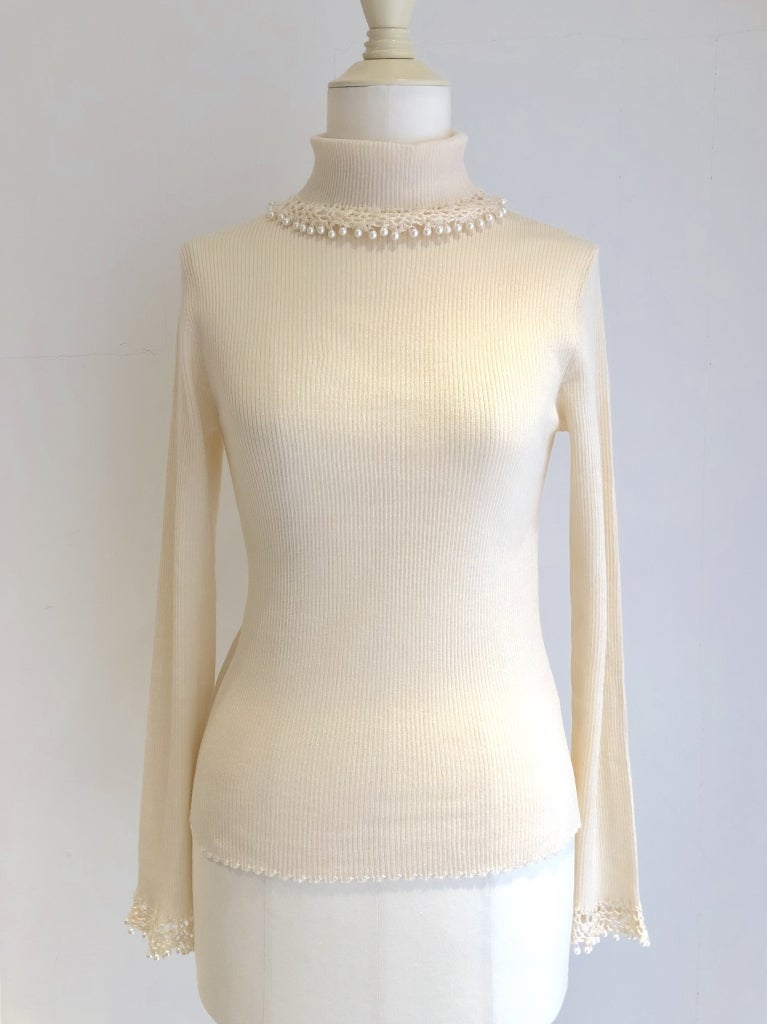 Knit Turtleneck with Pearls