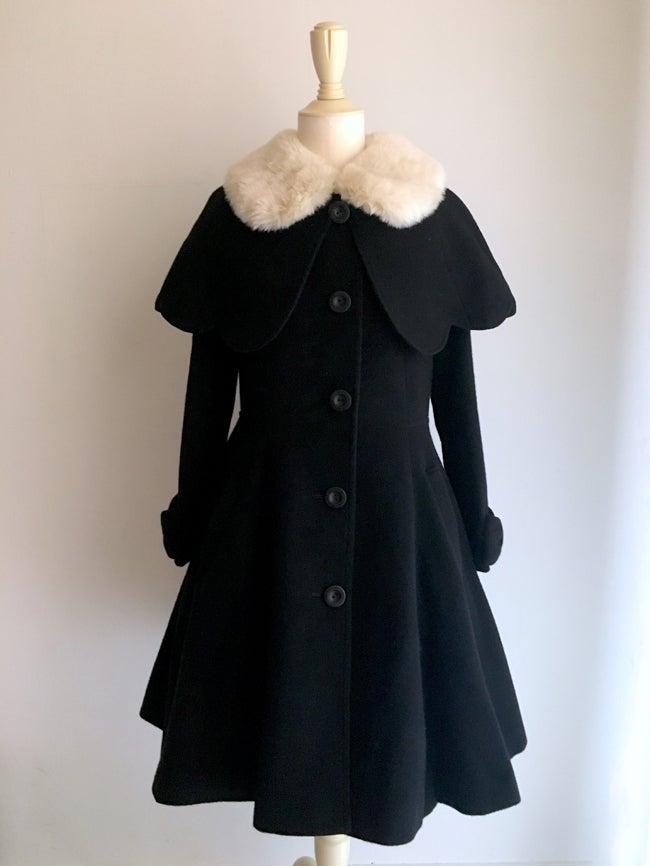 [Design notes] Cape and fur collar are detachable. Material fiber content varies depending on colorway.
