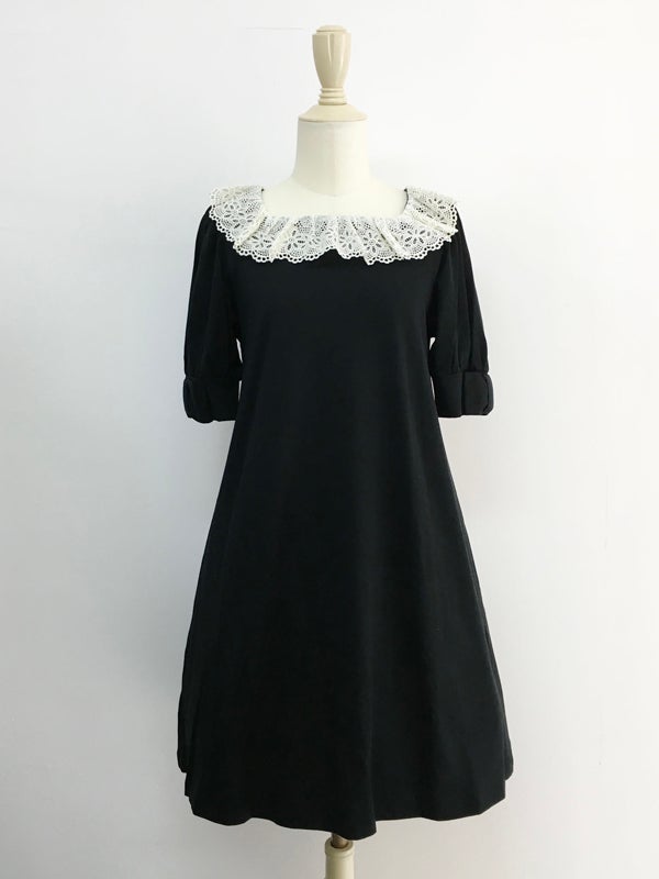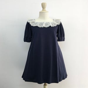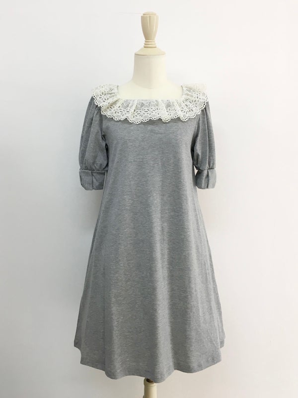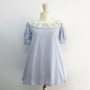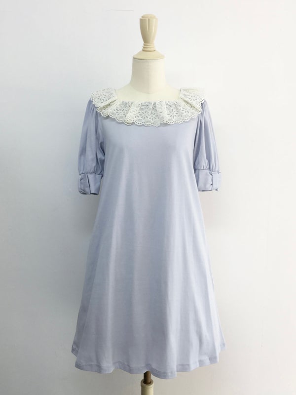 スクエアレース・リボンパフカットソーワンピース