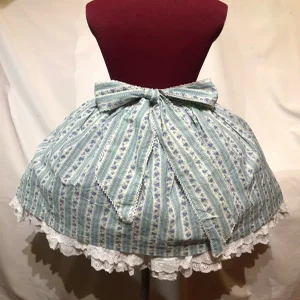 前の総フリルが可愛らしい2枚仕立てのロマンティックなスカートです。ロマンティックな柄が可愛らしいフリル&レースがボリュームたっぷり。後ろリボンで調節可能。後ろのリボンは取り外し可能。ボタンのエンブレムもキュート!