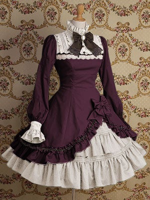 配色使いが可愛らしい、長袖のヨークドレスです。