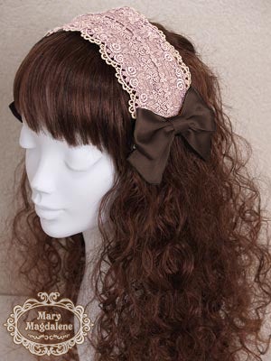 スカラップ状のレースを両サイドに施した、広幅の可愛らしいヘッドドレスです。