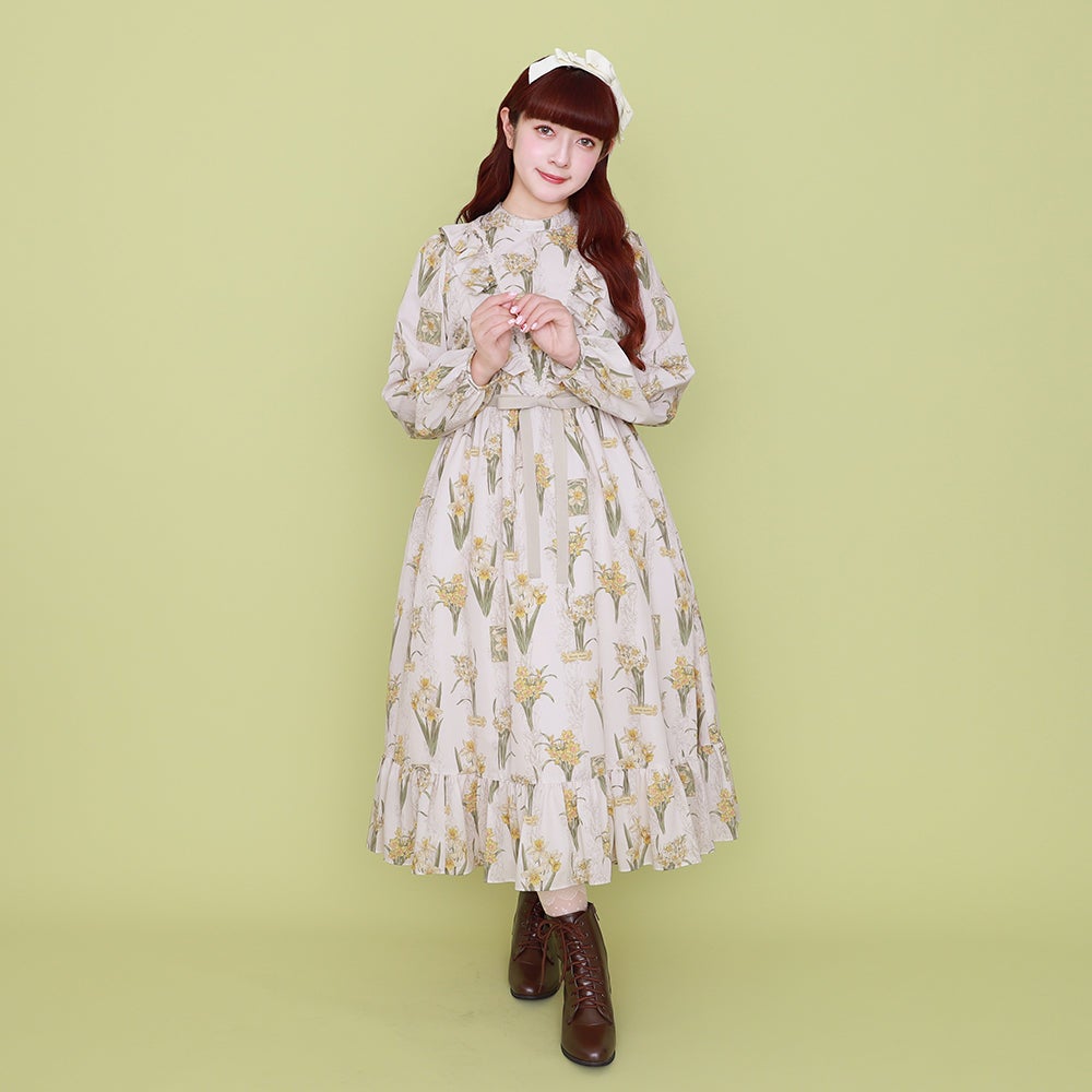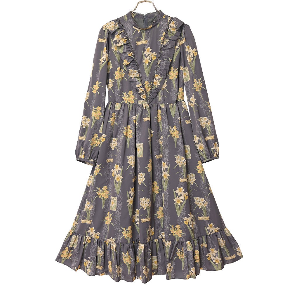 野に咲く水仙のVラインワンピース