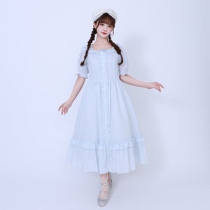 前開きのデザインなので、裾からペチコートやパニエを覗かせる着こなしもおすすめ。