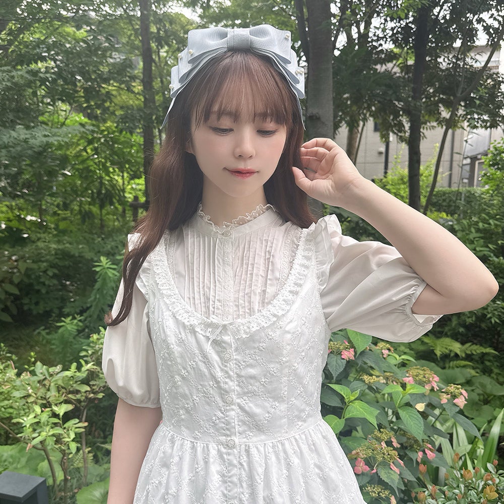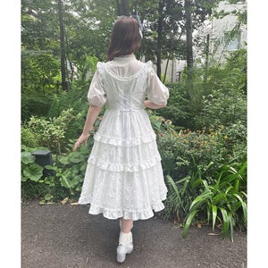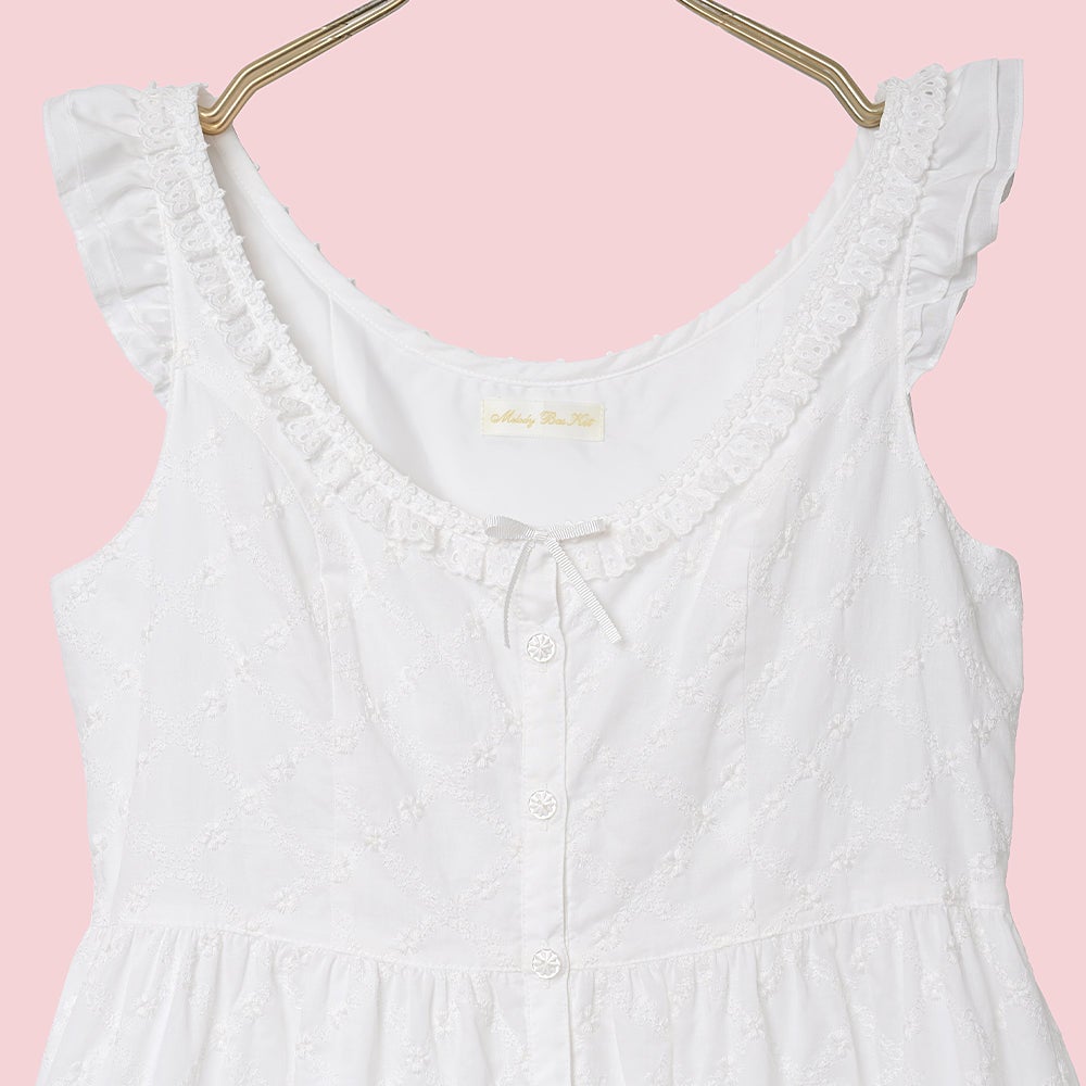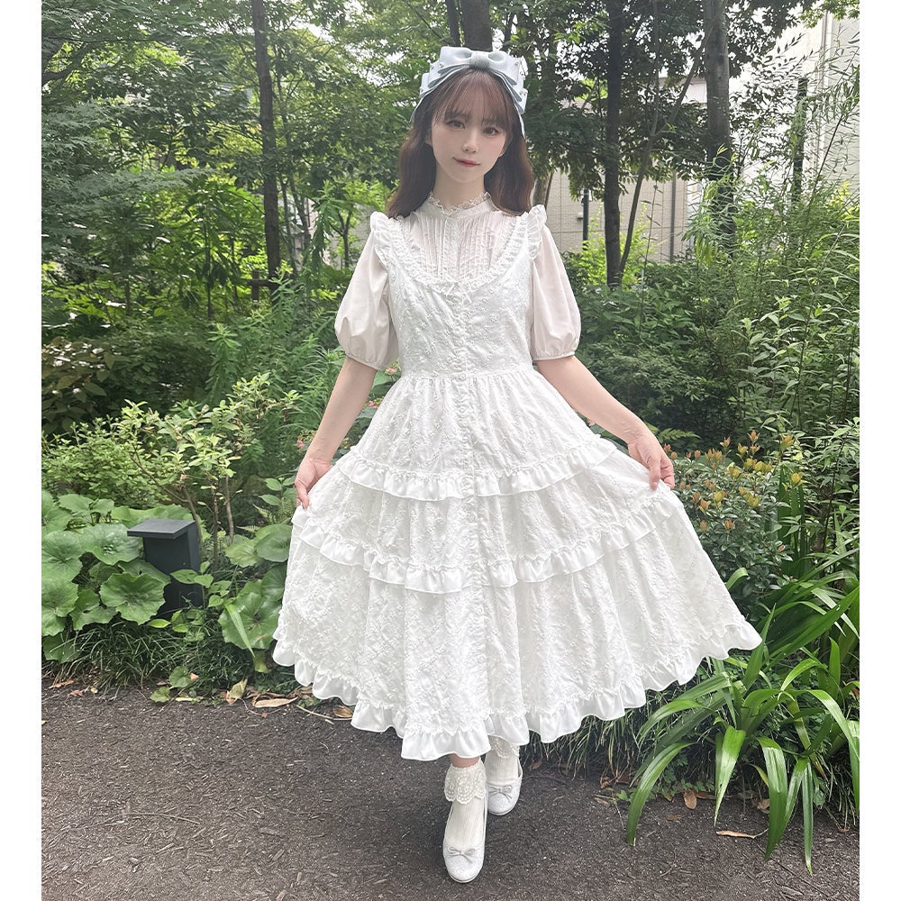 ラティスブーケ刺繍 フロントボタンジャンパースカート