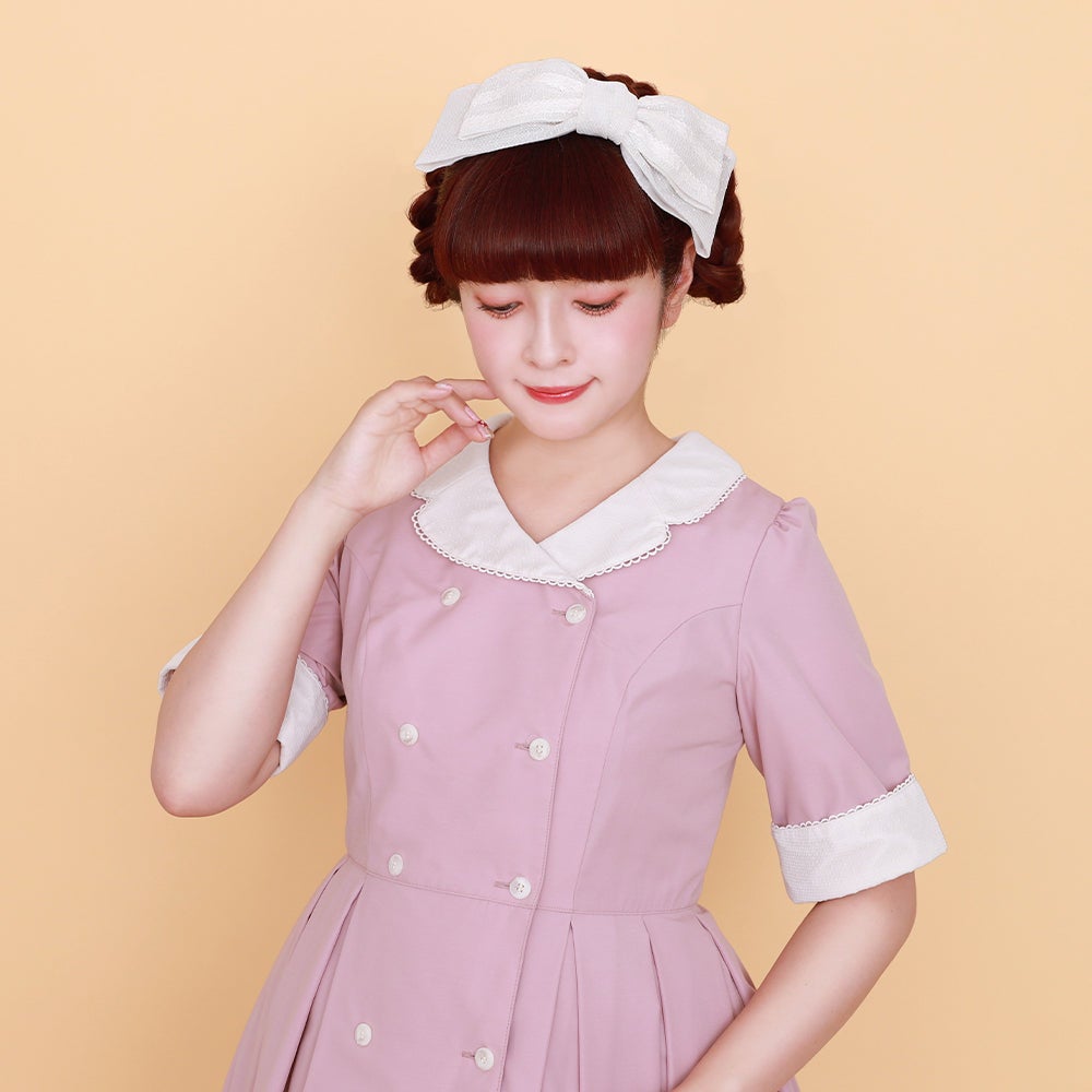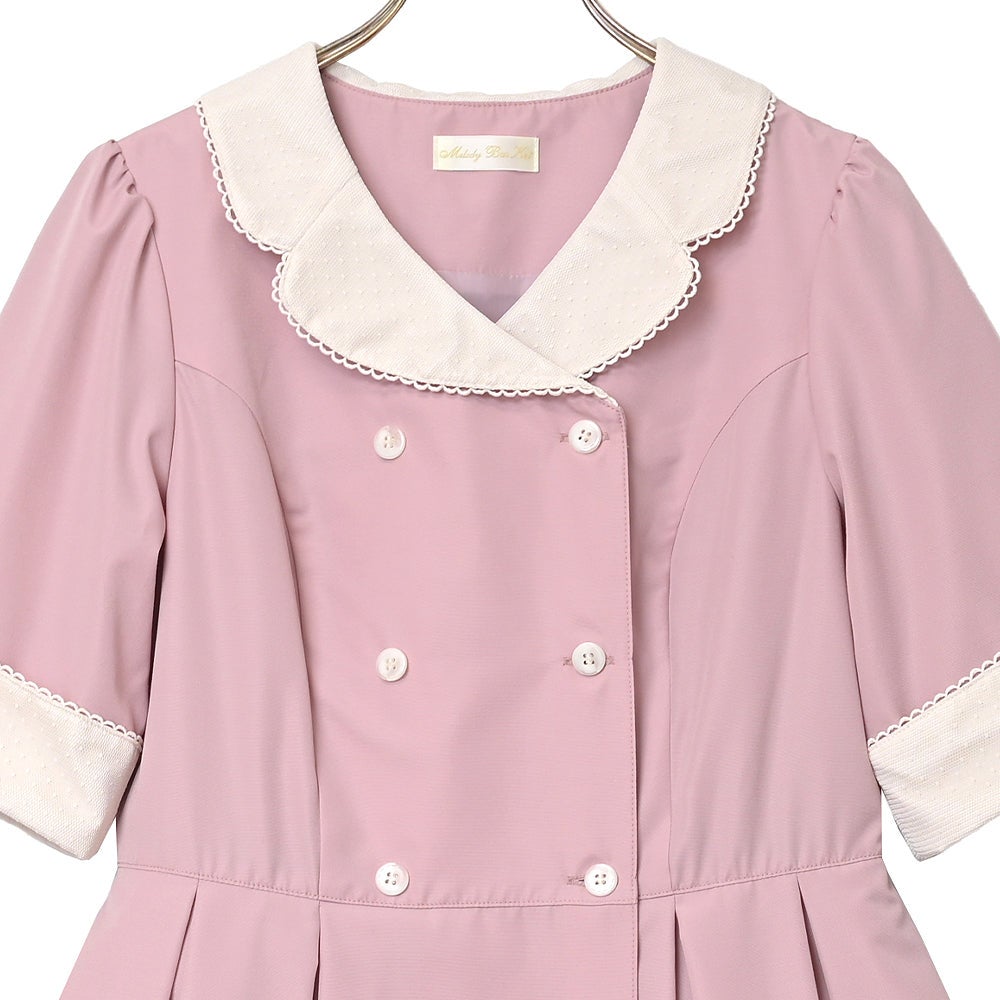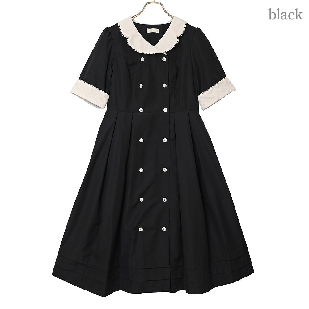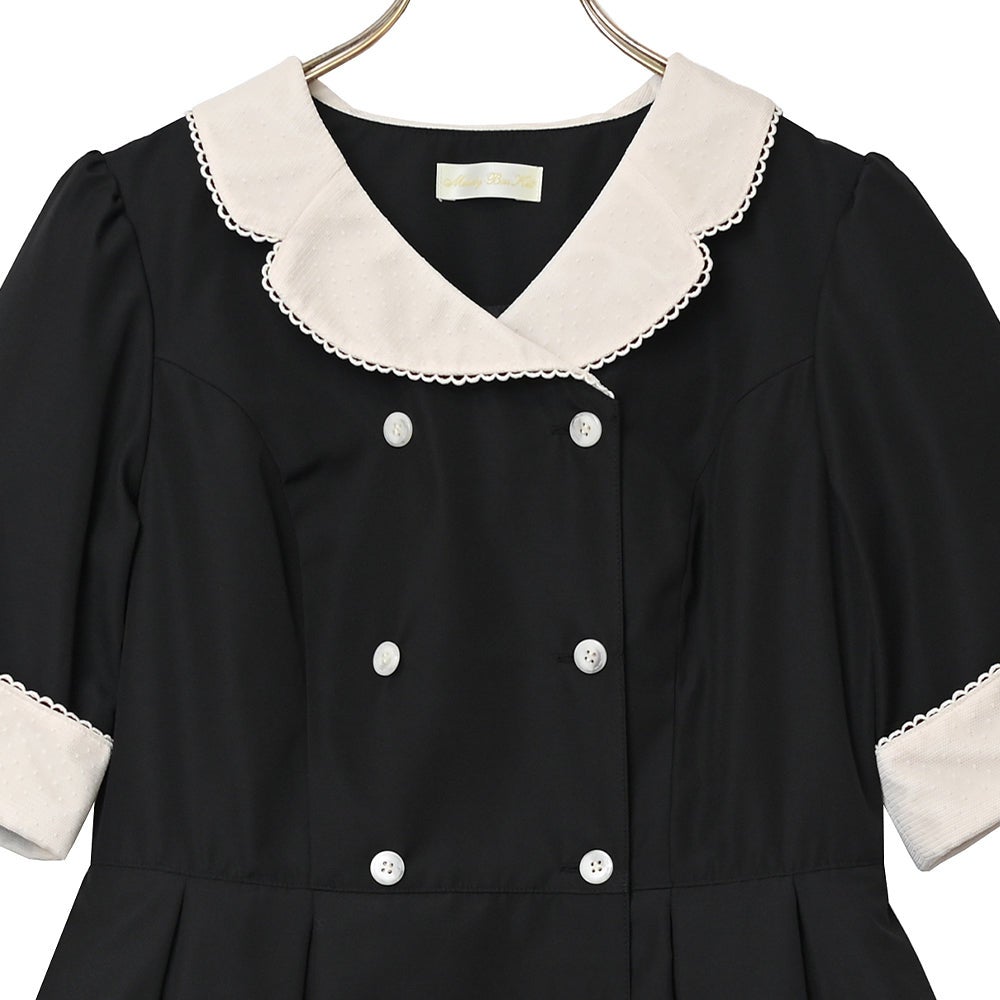 アイボリーの襟とカフスが甘さを添える、可憐で整った一着。