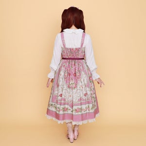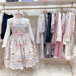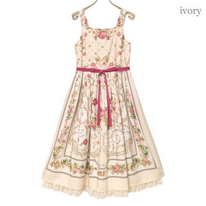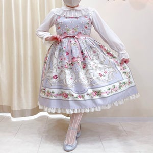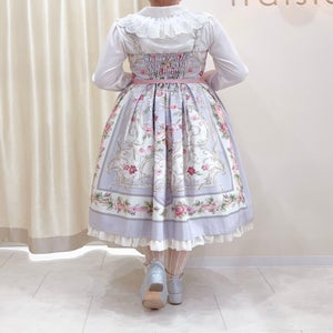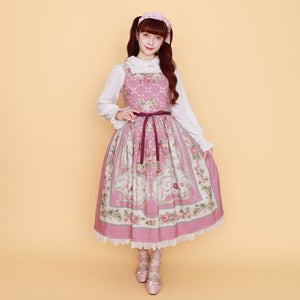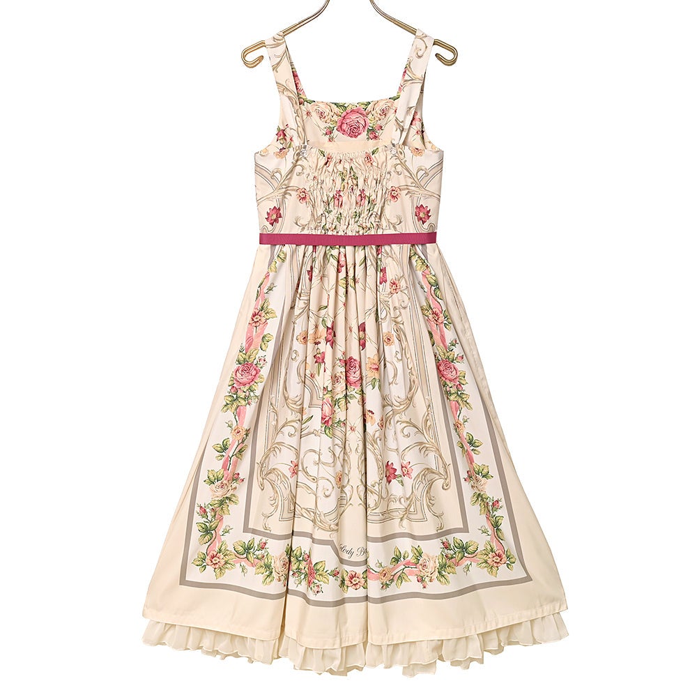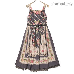 柄を際立たせるスクエアネックデザインのジャンパースカート。