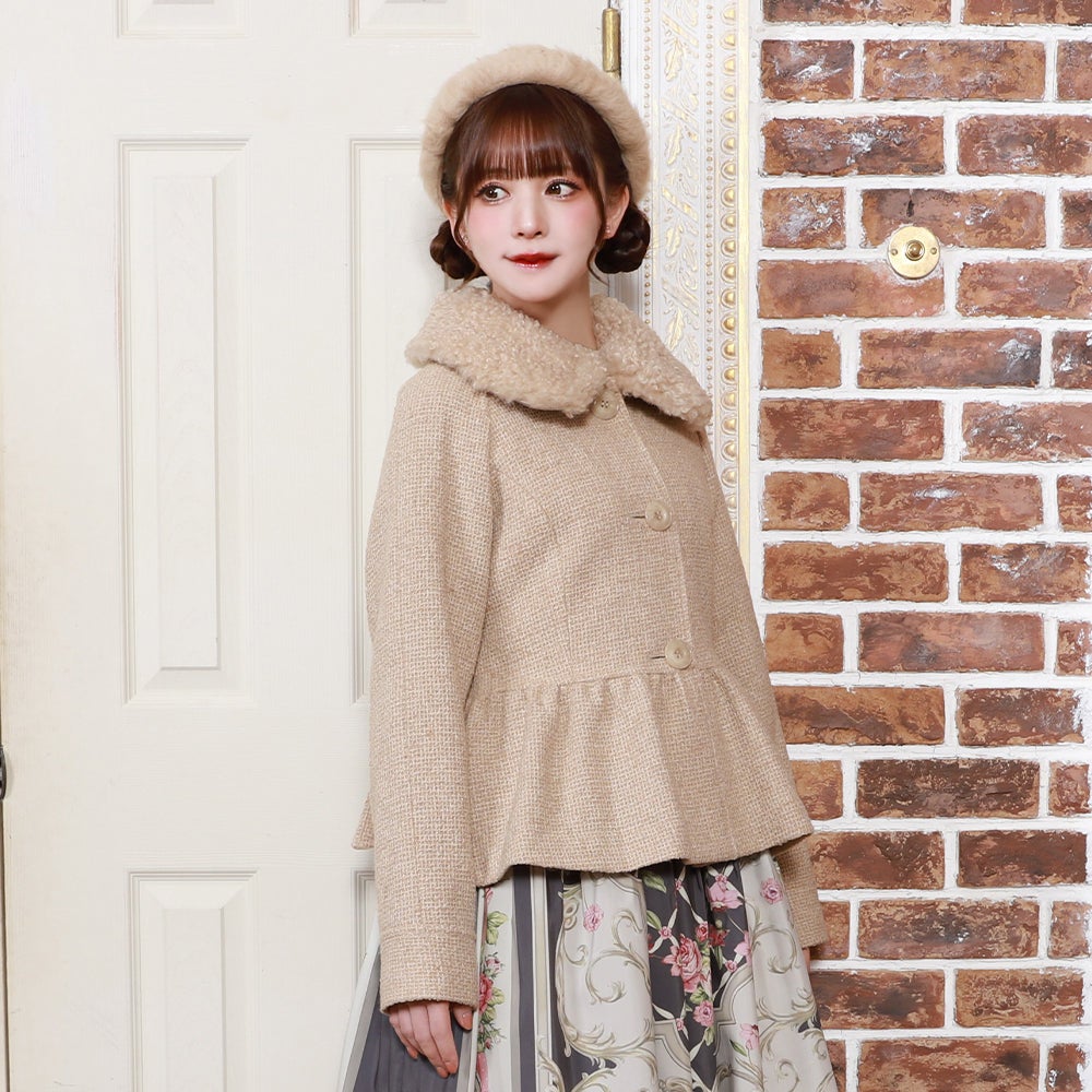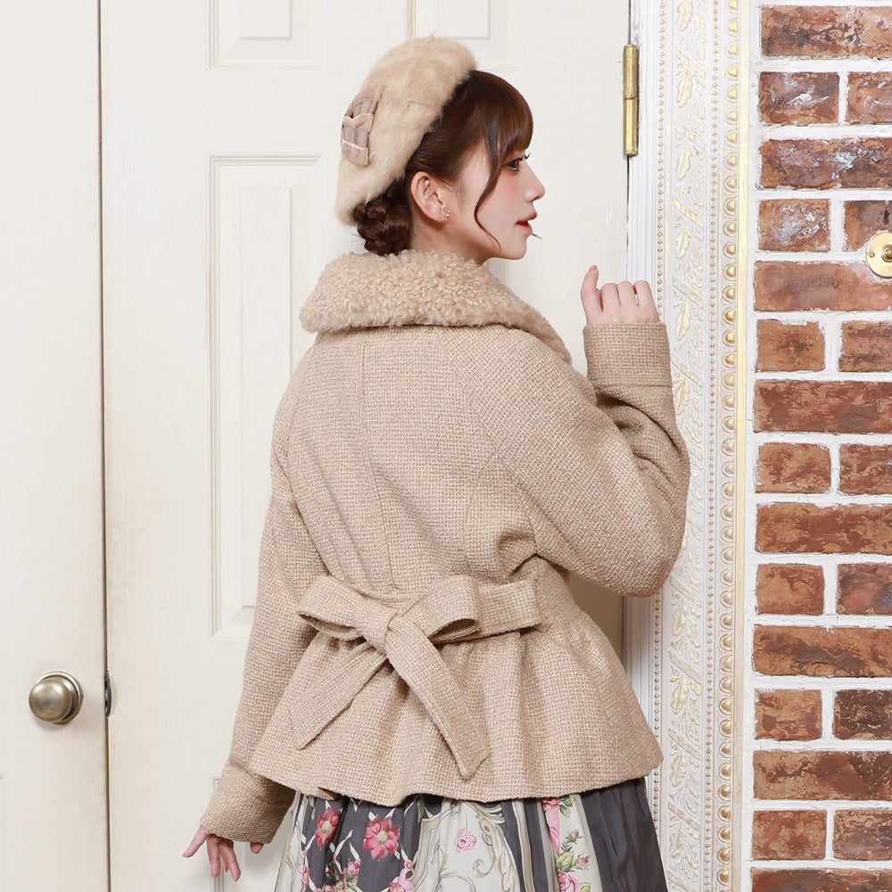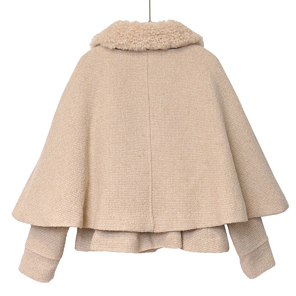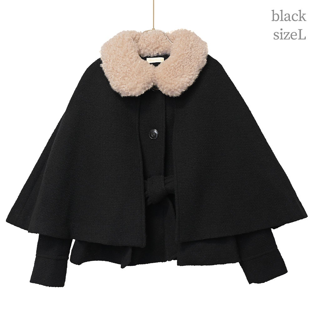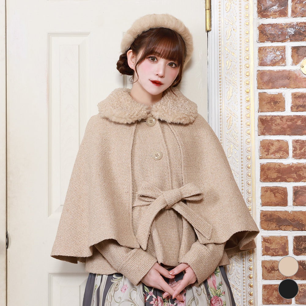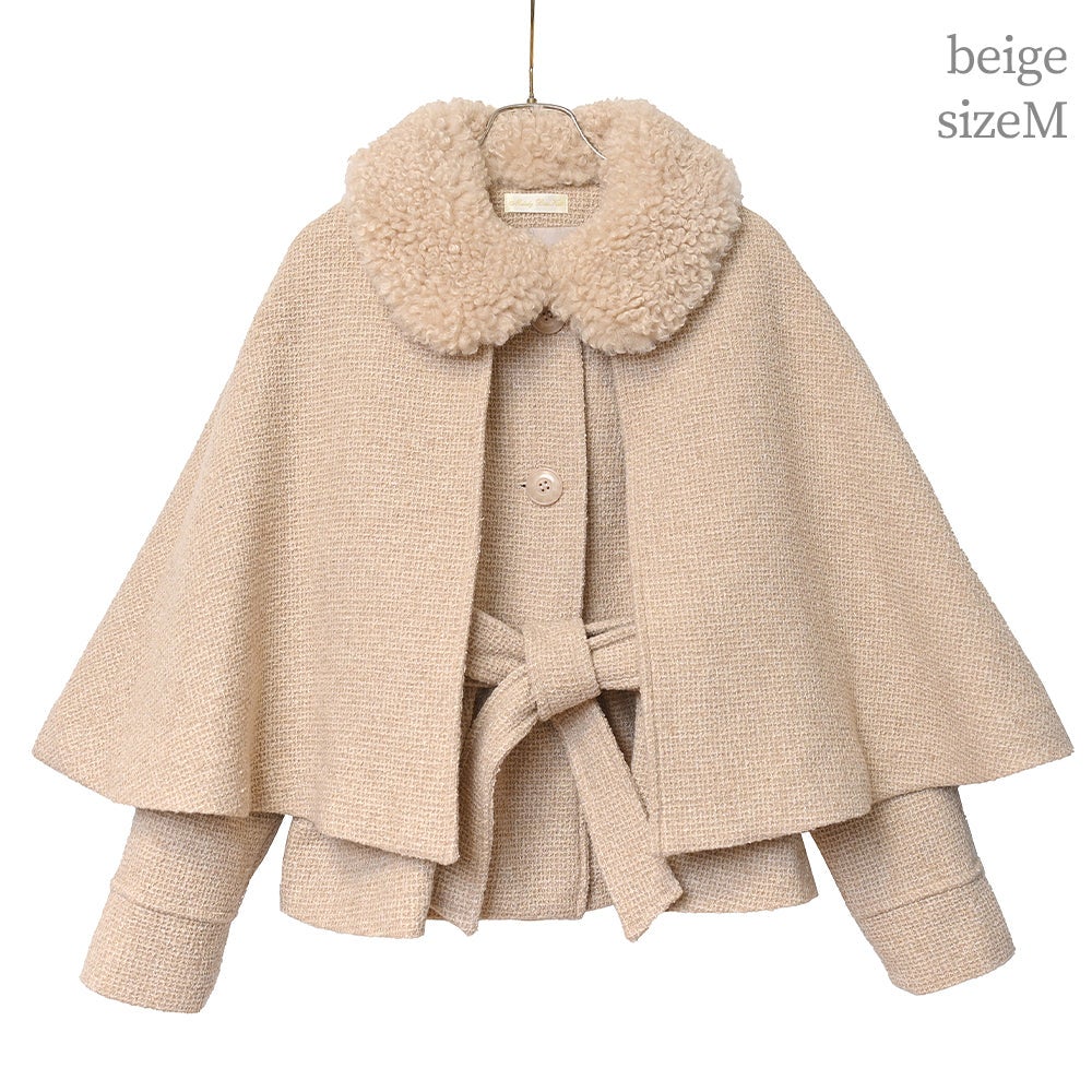 ケープ付きツイードショートコート