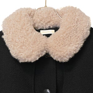 ティペットにはミミクリーシープファーを使用しました。カールした羊毛のような毛が特徴的なエコファー生地です。