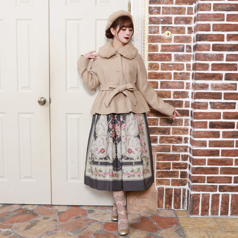ファーティペット、ケープ、ウエストベルトは取り外し可能。