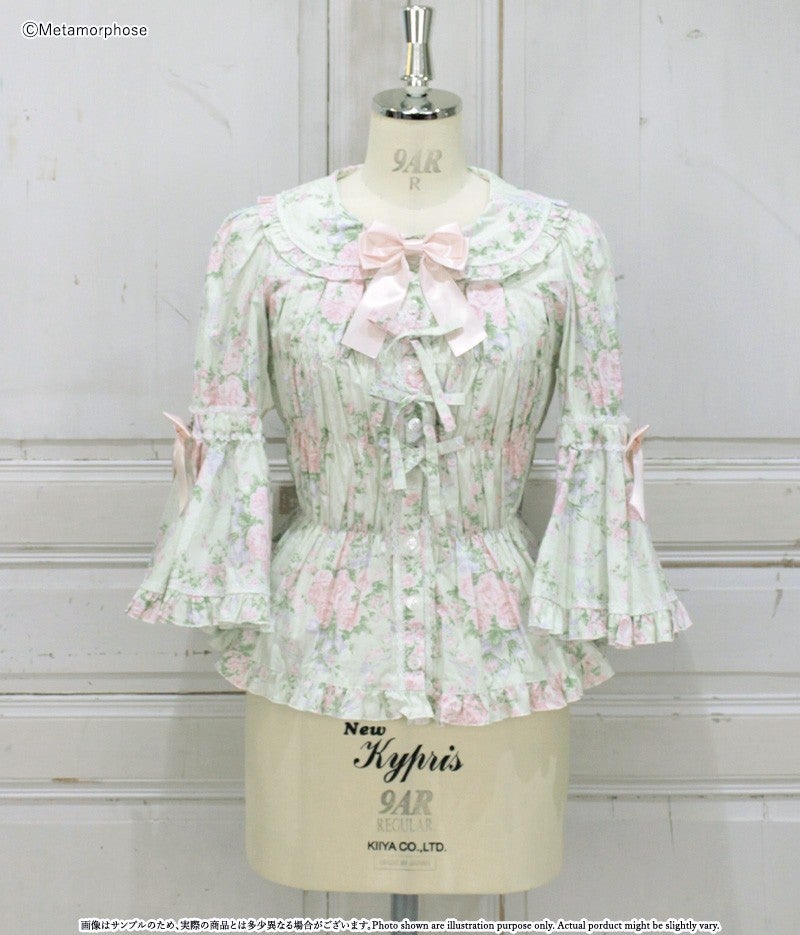 優しい花の香りに誘われた先は、いっぱいにひろがるローズガーデン♡淡い薔薇につつまれて優雅なひと時を楽しんで…♪丸襟と姫袖がポイントのブラウスです。シャーリングの身頃で着心地抜群◎おそろいのJSKと合わせてワンピースのようにもコーディネートできますよ♪好評いただいたシリーズに新たなアイテムを加えて再登場です☆