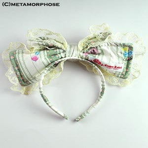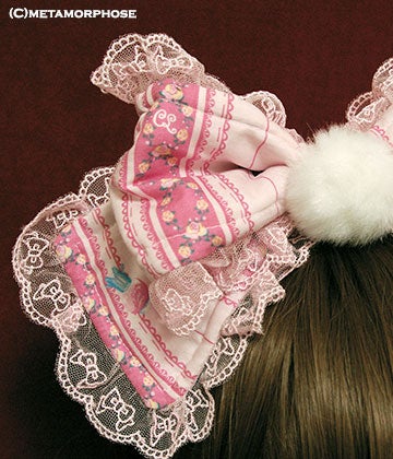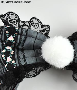 fabric:original Fancy Bunny print fabric (cotton 100%), original tulle lace, off white faux fur ball