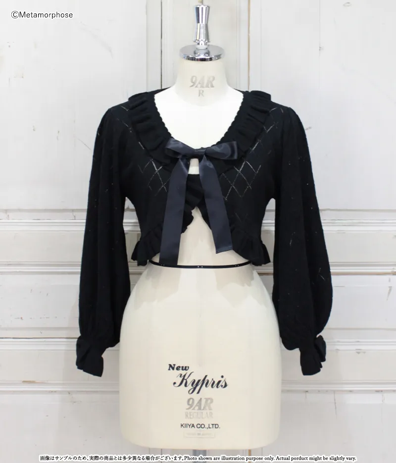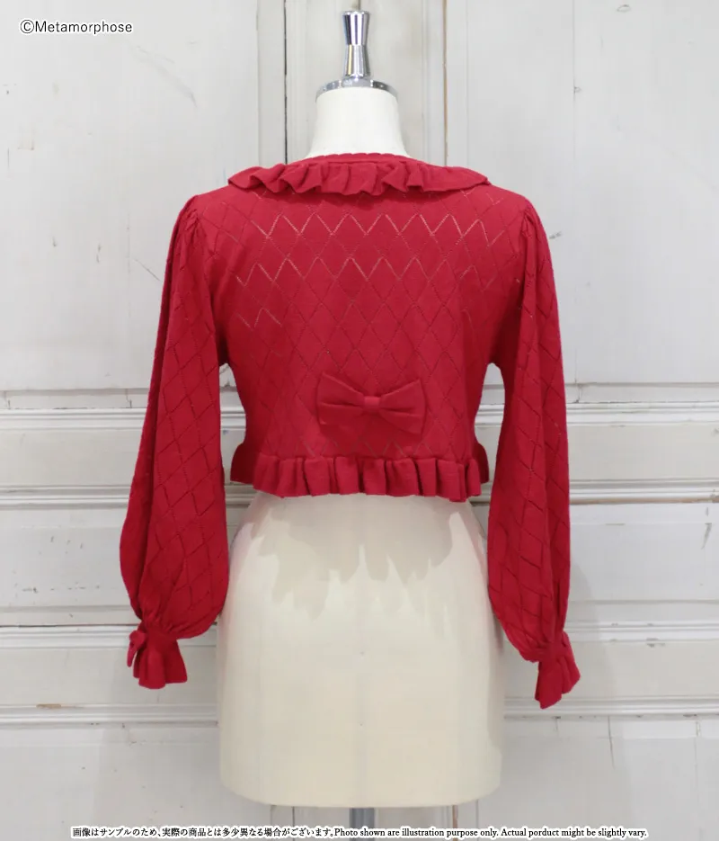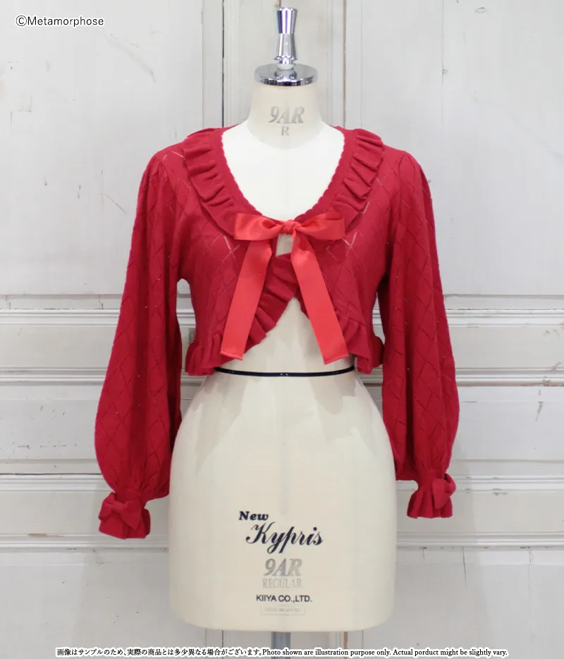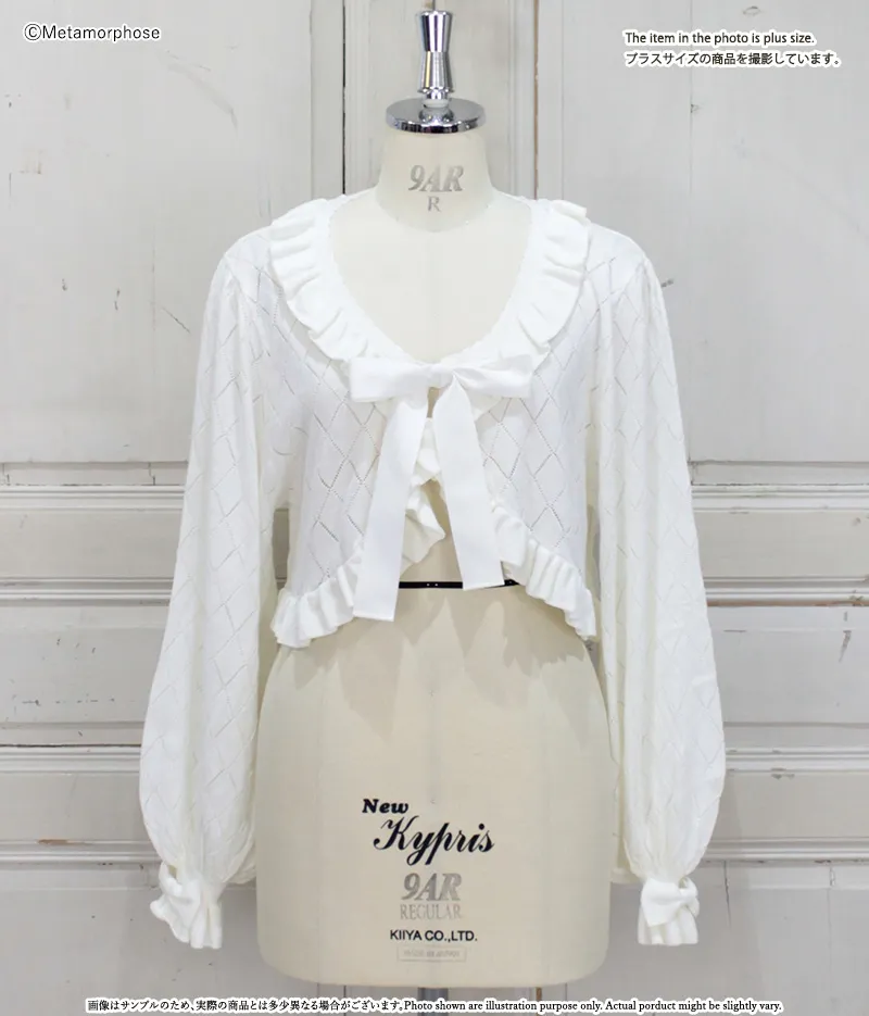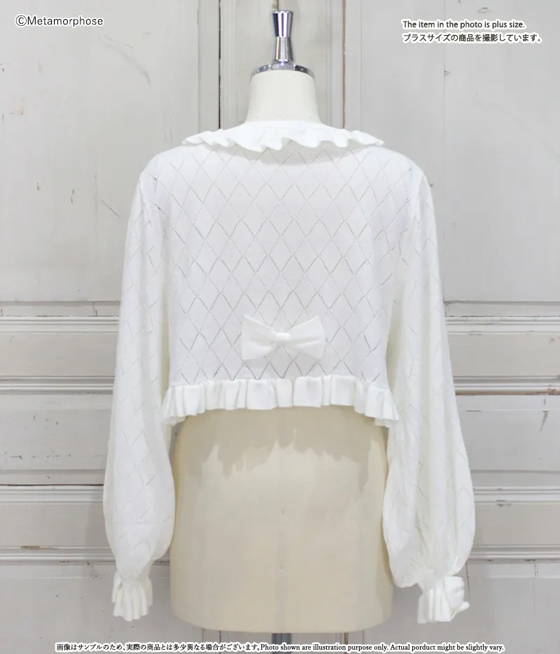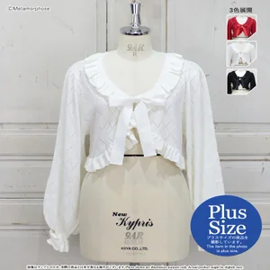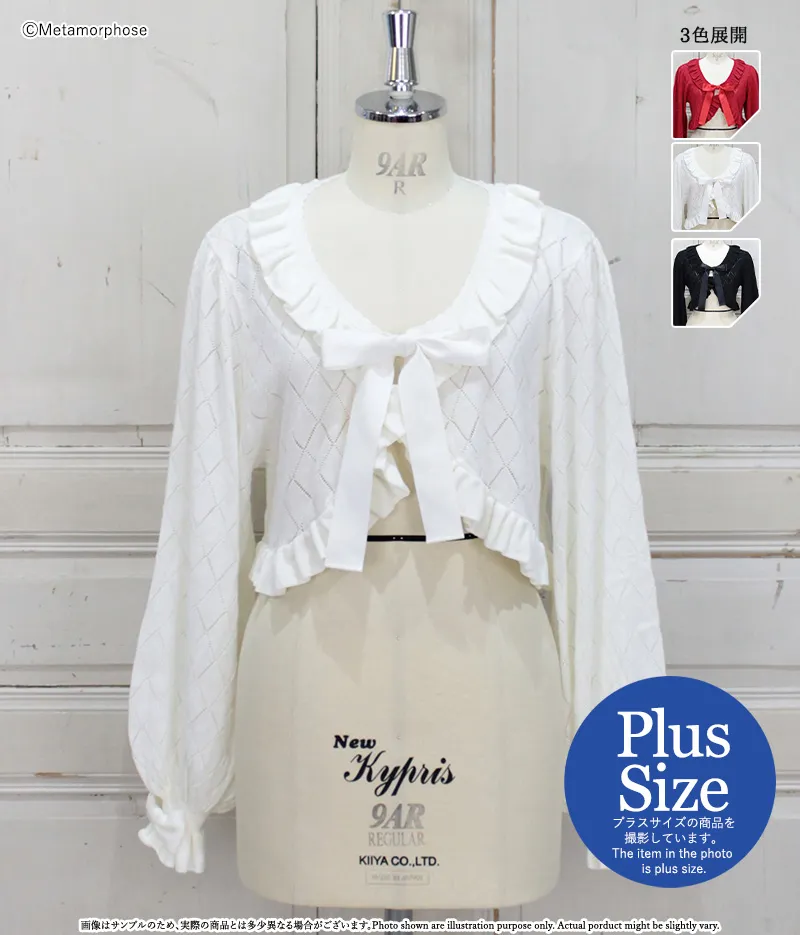 【プラスサイズ】ダイヤすかしあみ長袖ボレロ