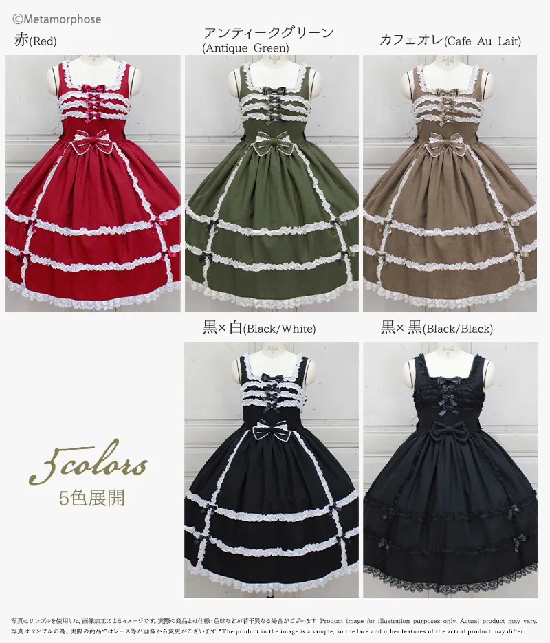 人気の両山レースJSKが機能性ばっちりなポケットがプラスされ再登場です!両山レースをたっぷり使用しリボンを散りばめたデザインは、懐古的印象に♪ブリム付ヘッドドレスと合わせればアンティークドールなコーディネートも楽しめちゃいます☆