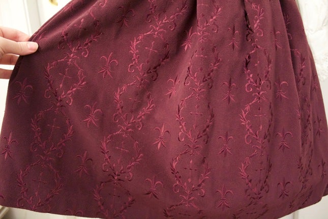 [Styling] Skirt fabric has a suede-like texture and motif is embroidered.