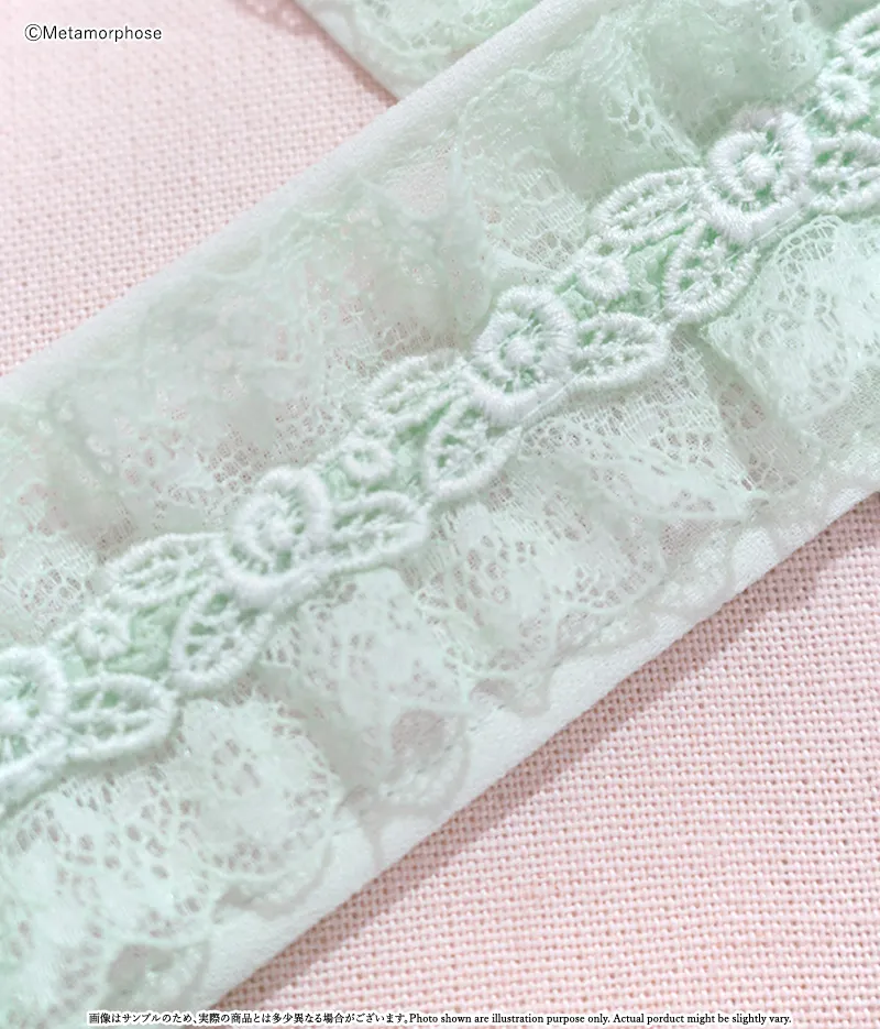 crepe weave (100% polyester) for main fabric, lace fabric(100% polyester) for accent fabric, raschel lace, chemical lace, satin ribbon, aurora button, charm