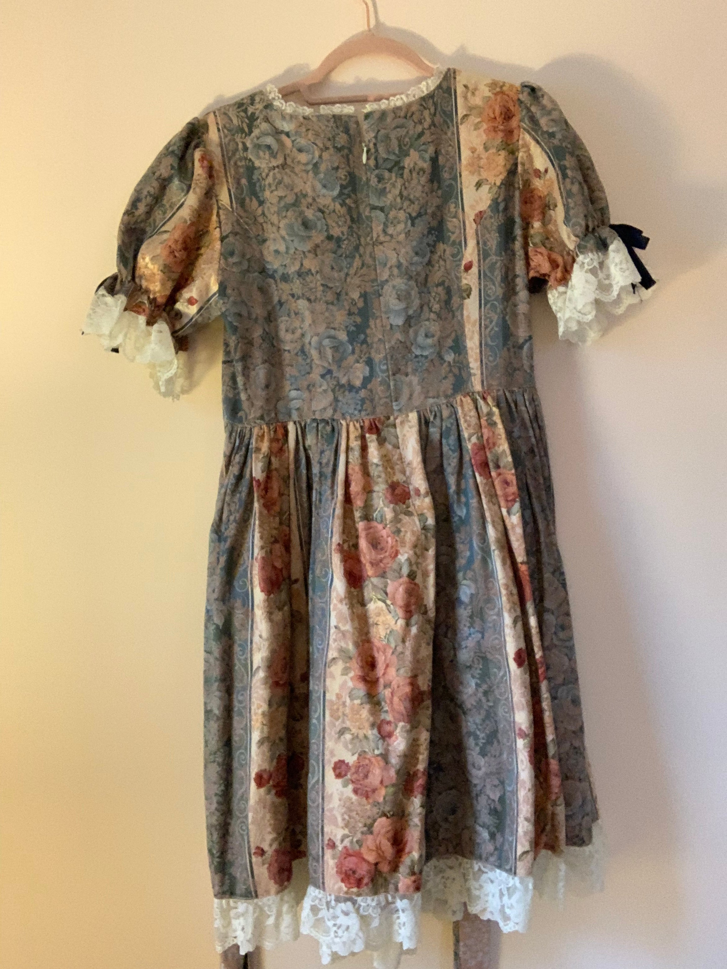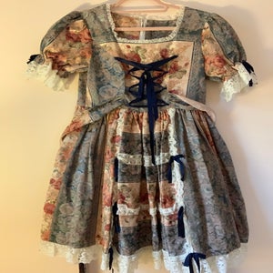 [Design notes] Zipper back. Waist ribbon (not removable). Ribbon corset lacing on the front of the bodice. Glossy jacquard dress, jewel-colored dress with soft curves. Wearing a beautiful flower. A noble princess attire.