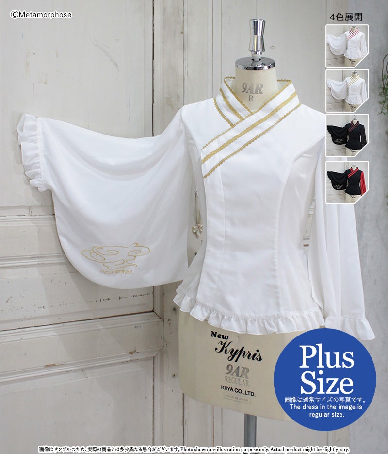 【プラスサイズ】刺しゅう入り着物合わせ風ブラウス