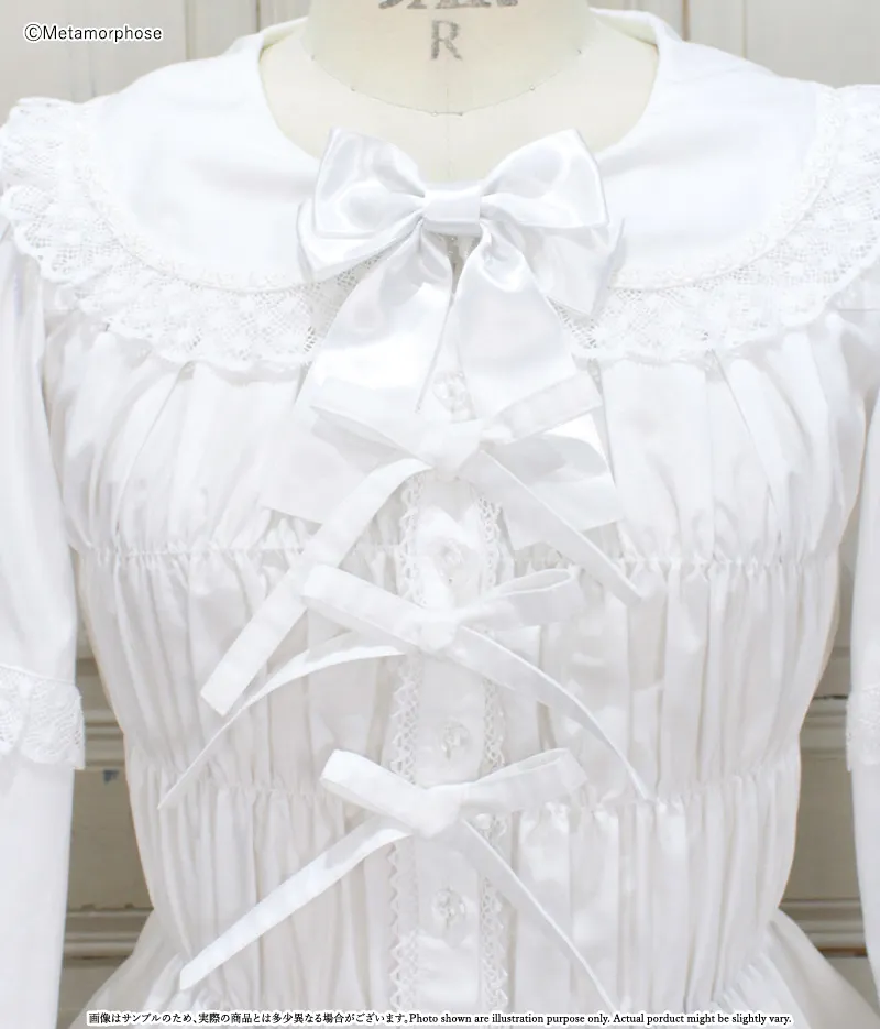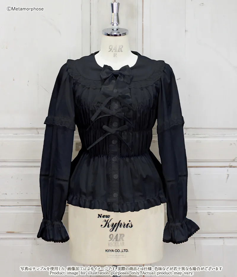 [Brand comment] The blouse that has a cute impression with the round collar and the lace is more lovely with the lace switching of the sleeves♪ It is comfortable to wear with the shirring body.