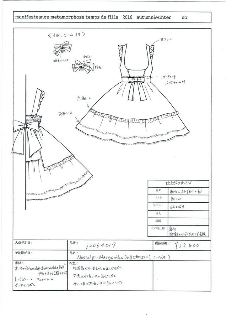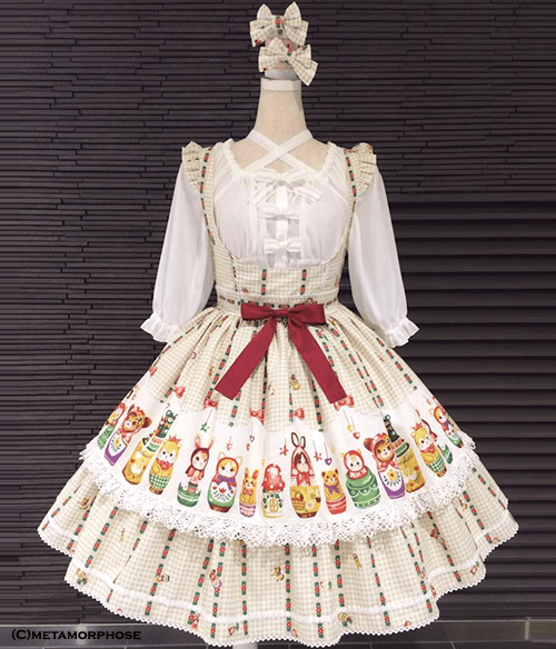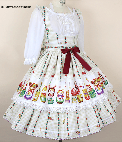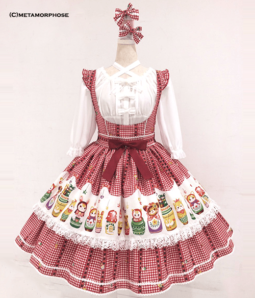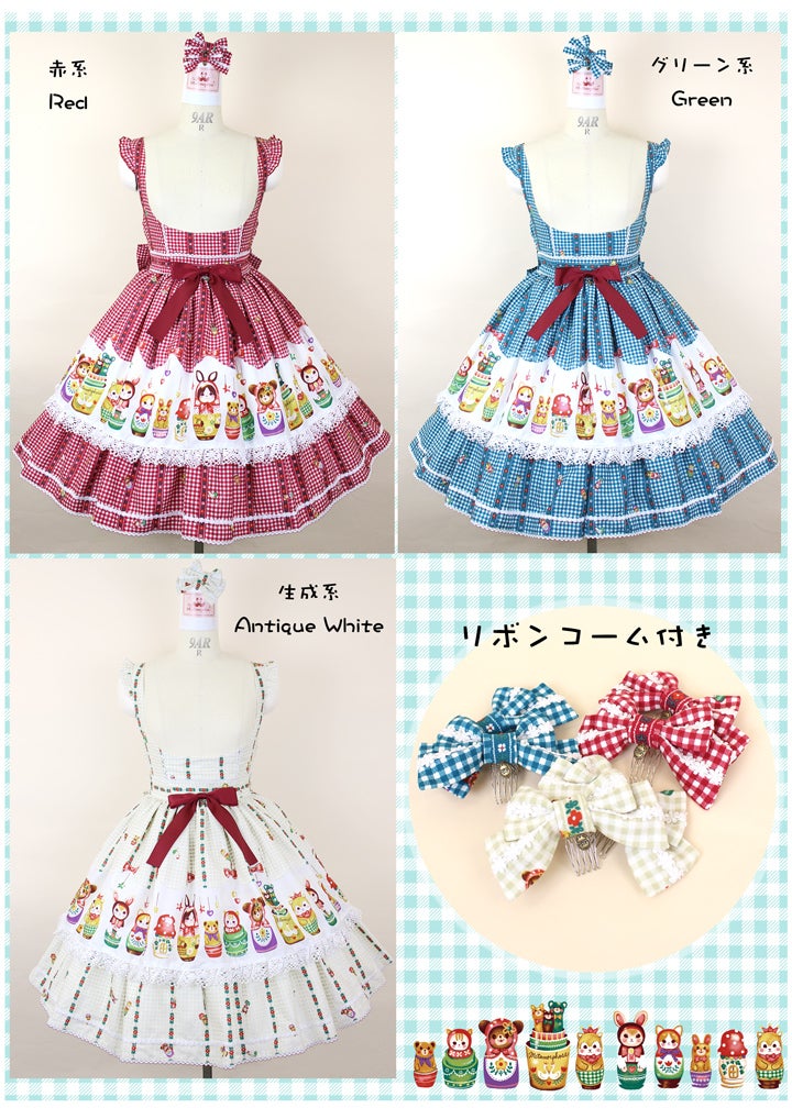 Matryoshka Doll Apron JSK with Ribbon Combs