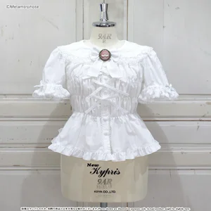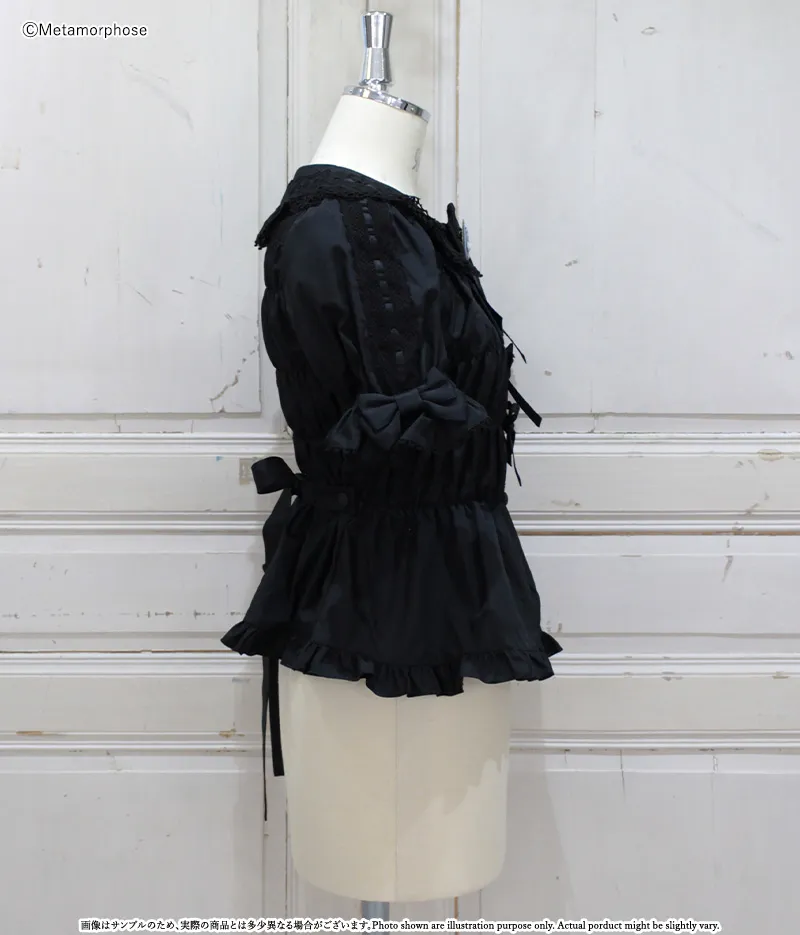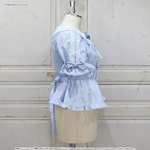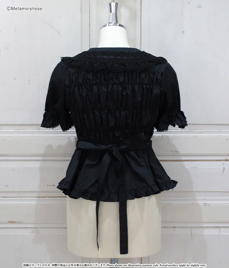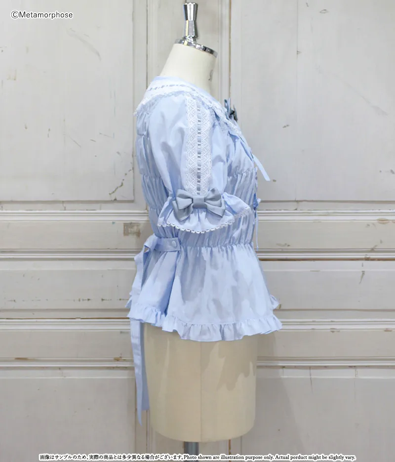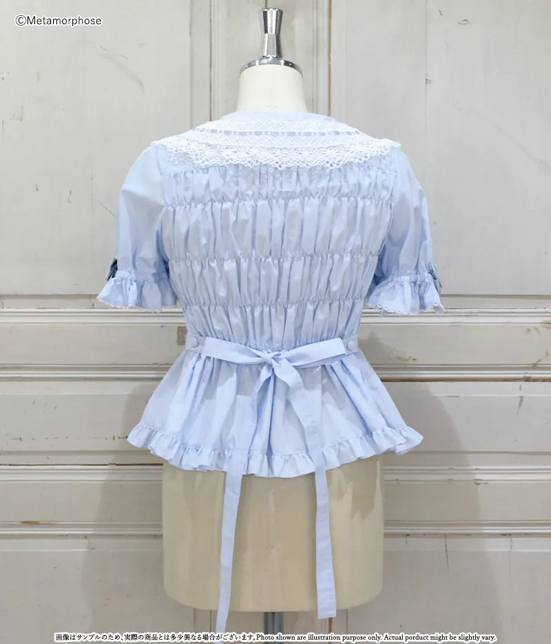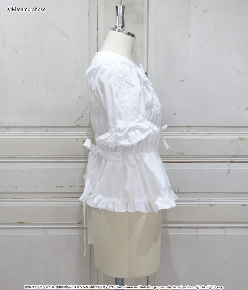 木漏れ日の中、たたずむ少女。どこからか聞こえてくるやさしいメロディにさそわれて…はしごレースに通されたリボンが美しい♥幅広のトーションレースをたっぷり贅沢に使用したブラウスです。