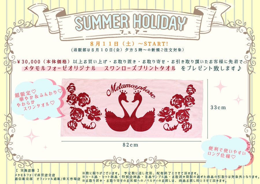 Offered to customers who spend over 30000jpy during the 2018 Summer Holiday Fair