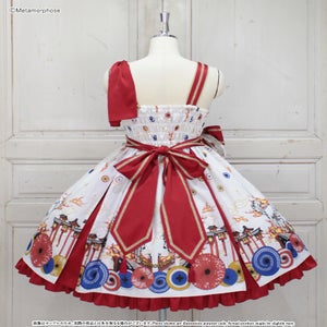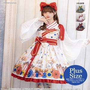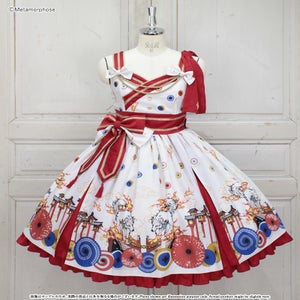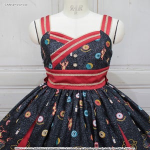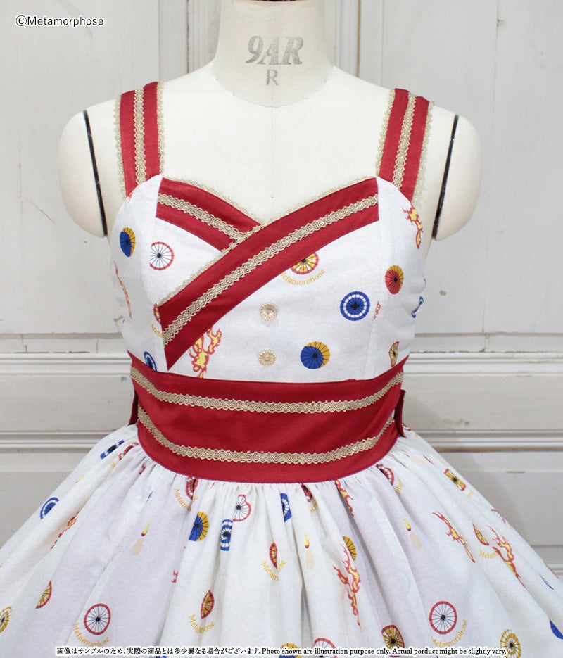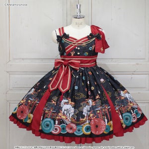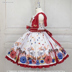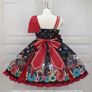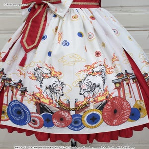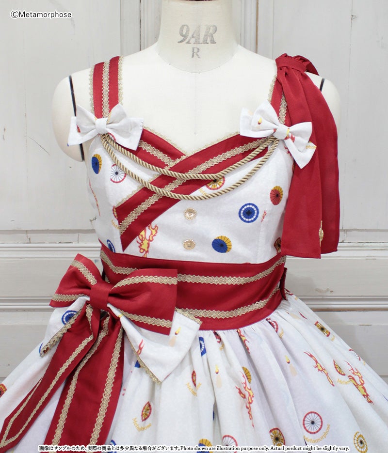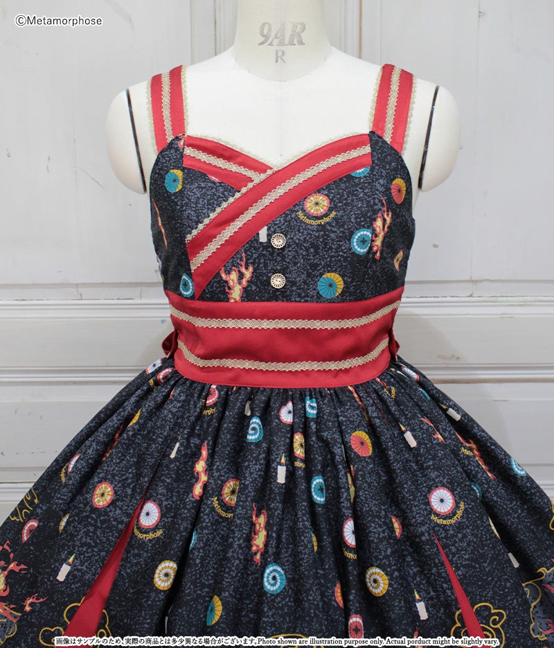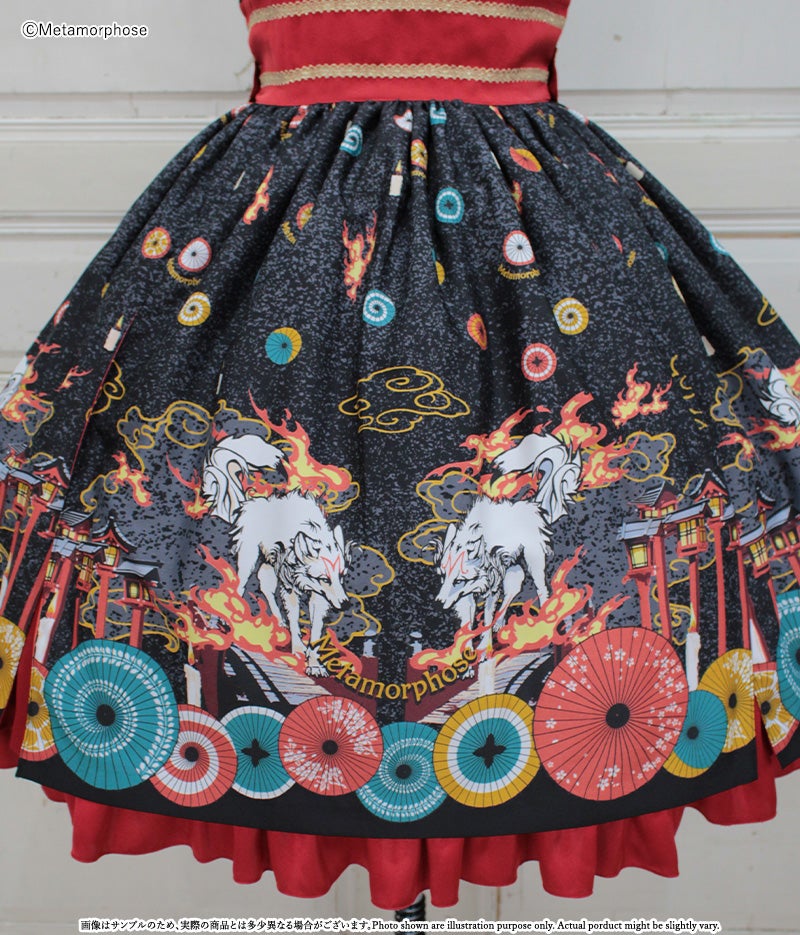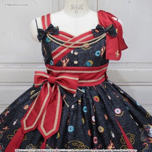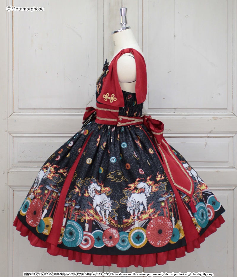 [Brand comment] At dawn, the pair of wolves and flames appear...Is this a dream or an illusion? The JSK depicts a mysterious scene where a story seems to be beginning, and the kimono-style design around the chest and the large obi-like ribbon make a Japanese mood. The JSK comes with parts that make it enjoy to wear, such as a decorative cloth on the left shoulder and ribbon brooches, and you can enjoy a variety of looks depending on how you coordinate it ♡