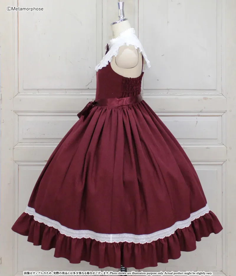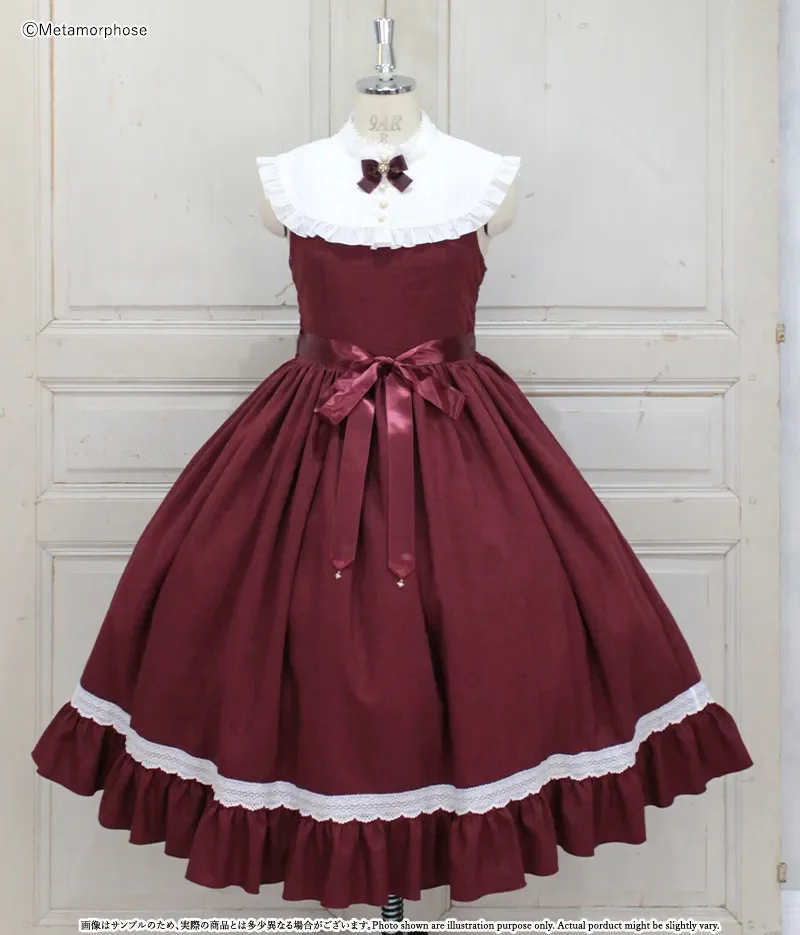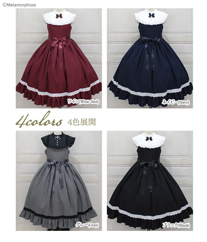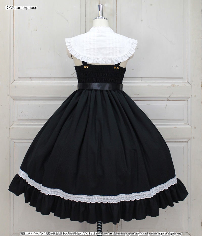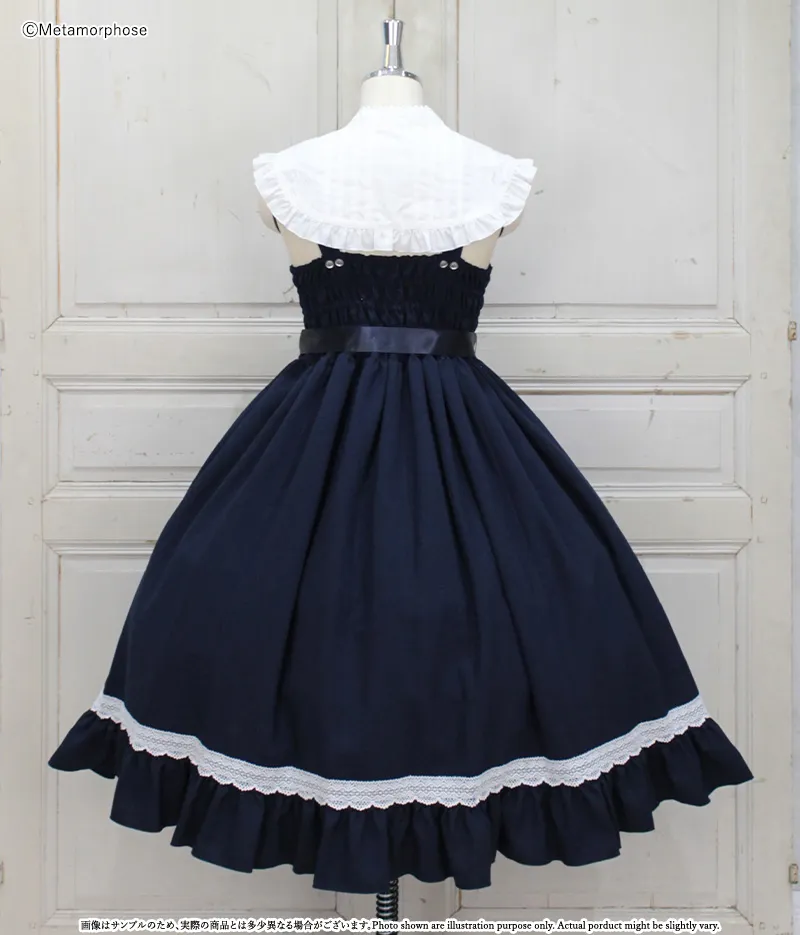 ヨーク付け襟が、夜空にそっと祈りを捧げるシスターのような敬虔さを添える、上品な雰囲気溢れるJSKです。付け襟は取り外し可能なので、同シリーズのブラウスと合わせれば、より清楚な印象にも…ミディアム丈のスカートが、クラシカルなムードをたっぷりと演出してくれます。