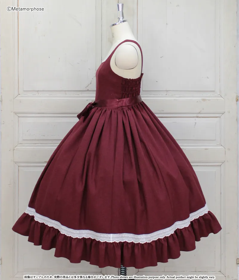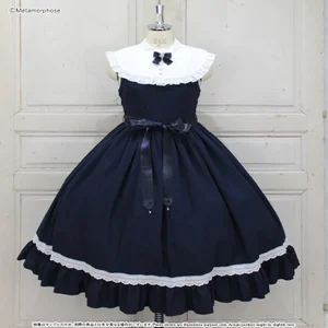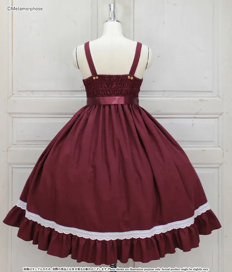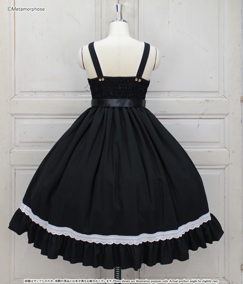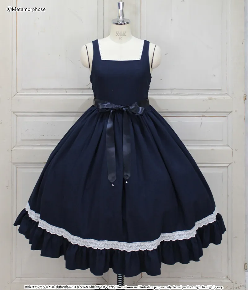 ヨーク付け襟が、夜空にそっと祈りを捧げるシスターのような敬虔さを添える、上品な雰囲気溢れるJSKです。付け襟は取り外し可能なので、同シリーズのブラウスと合わせれば、より清楚な印象にも…ミディアム丈のスカートが、クラシカルなムードをたっぷりと演出してくれます。