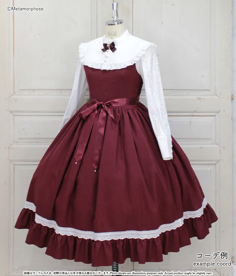 [Brand comment] This JSK has a detachable collar that gives it an elegant look. Remove the collar and match it with a series blouse for a more feminine look. And a medium-length skirt gives a classic look.