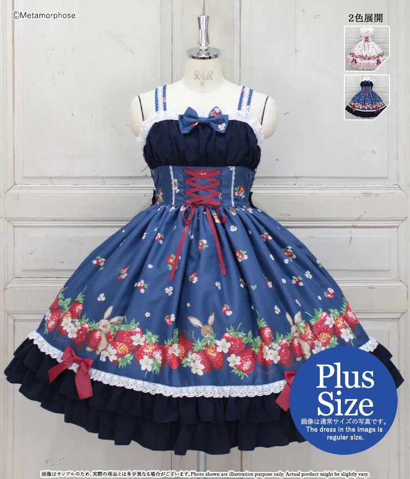 【プラスサイズ】ストロベリーガーデンバッスルフリルジャンパースカート