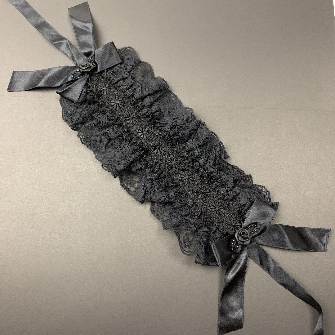 [Material] Raschel lace [Styling] Has two bows on either end, with small roses in the center of the bows.