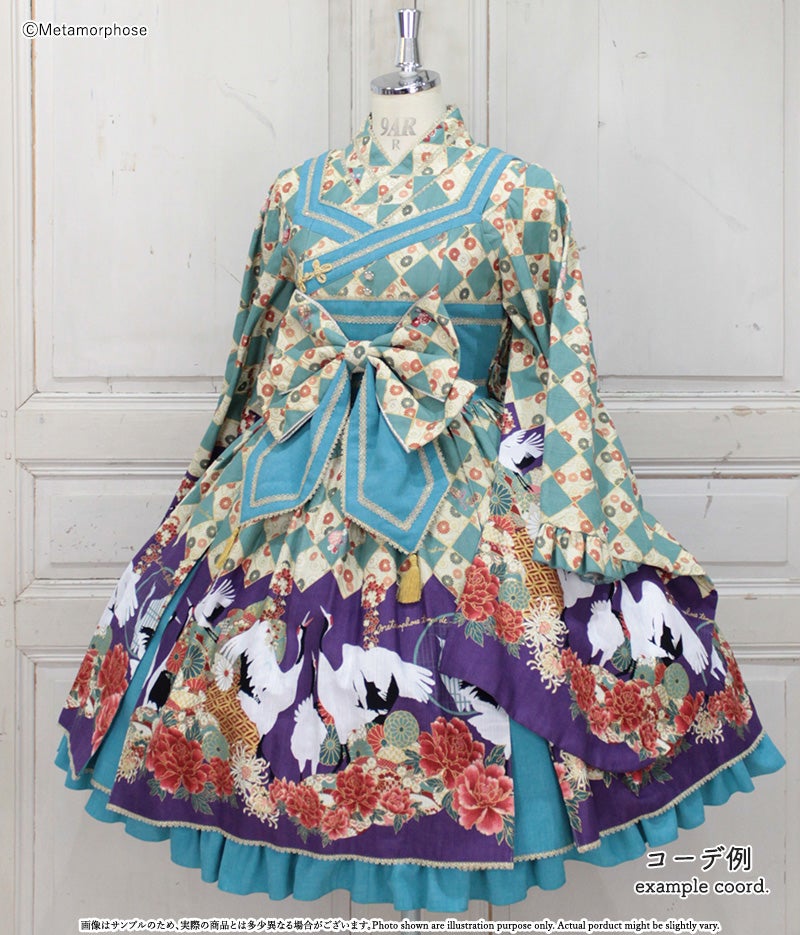 The JSK designed like a kimono. The large obi-like ribbon is eye-catching♪ Enjoy the gorgeous Wa-loli series ♡