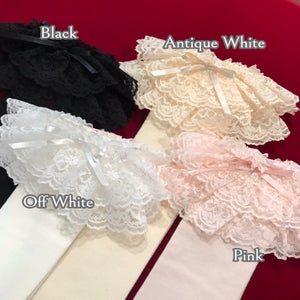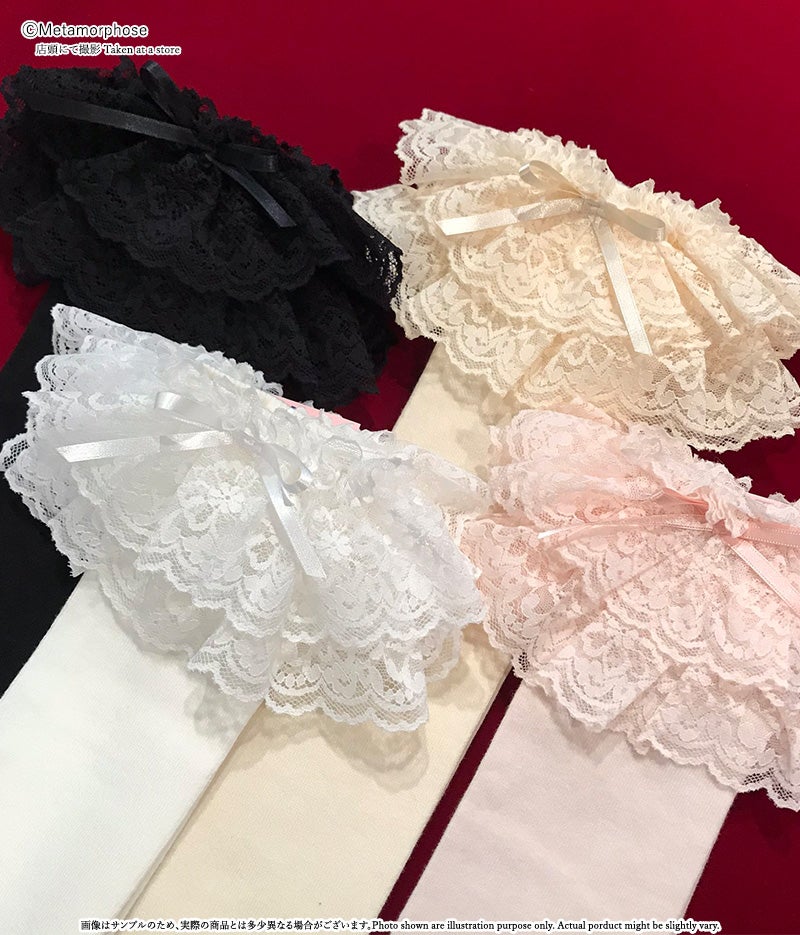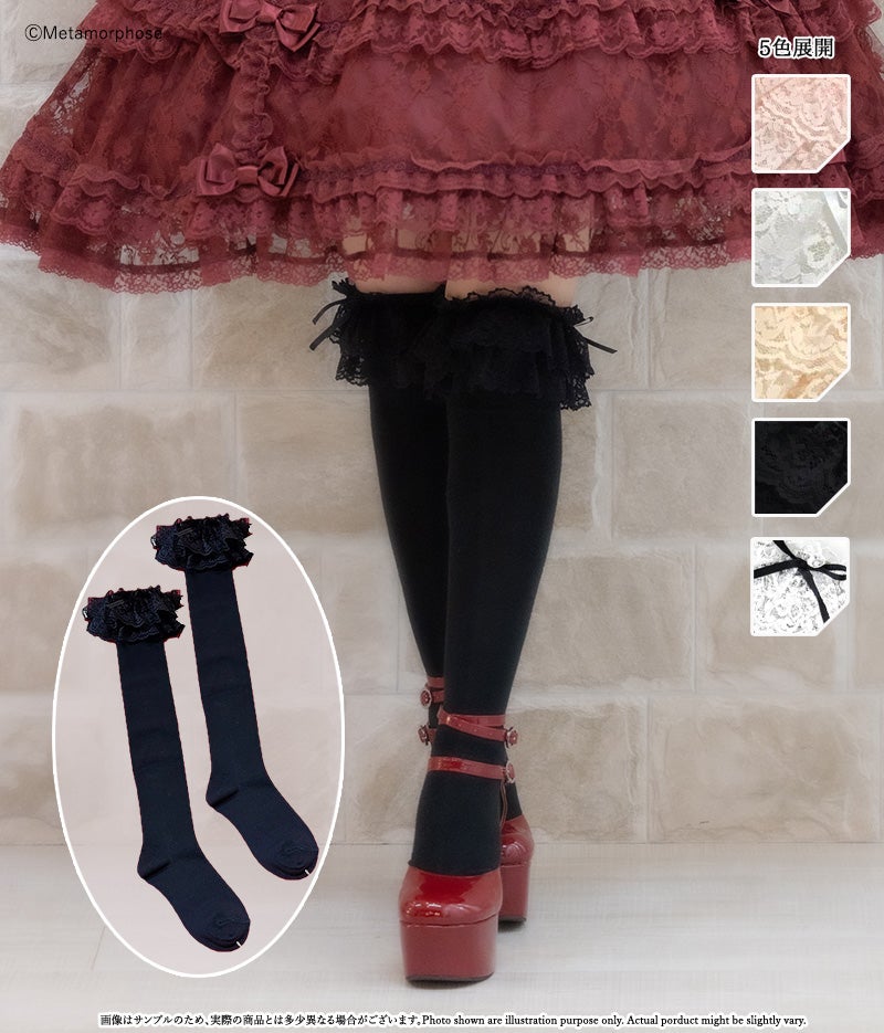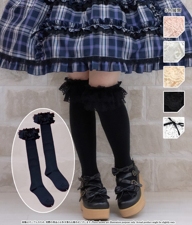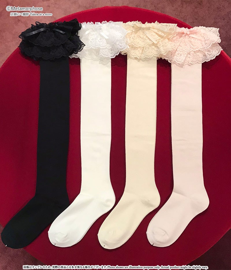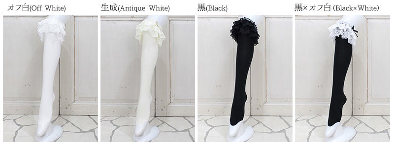 ラッセルレースがあしらわれた定番のオーバーニーです。