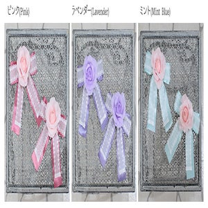 - Lavender: lavender ribbon/ off white lace/ lavender rose