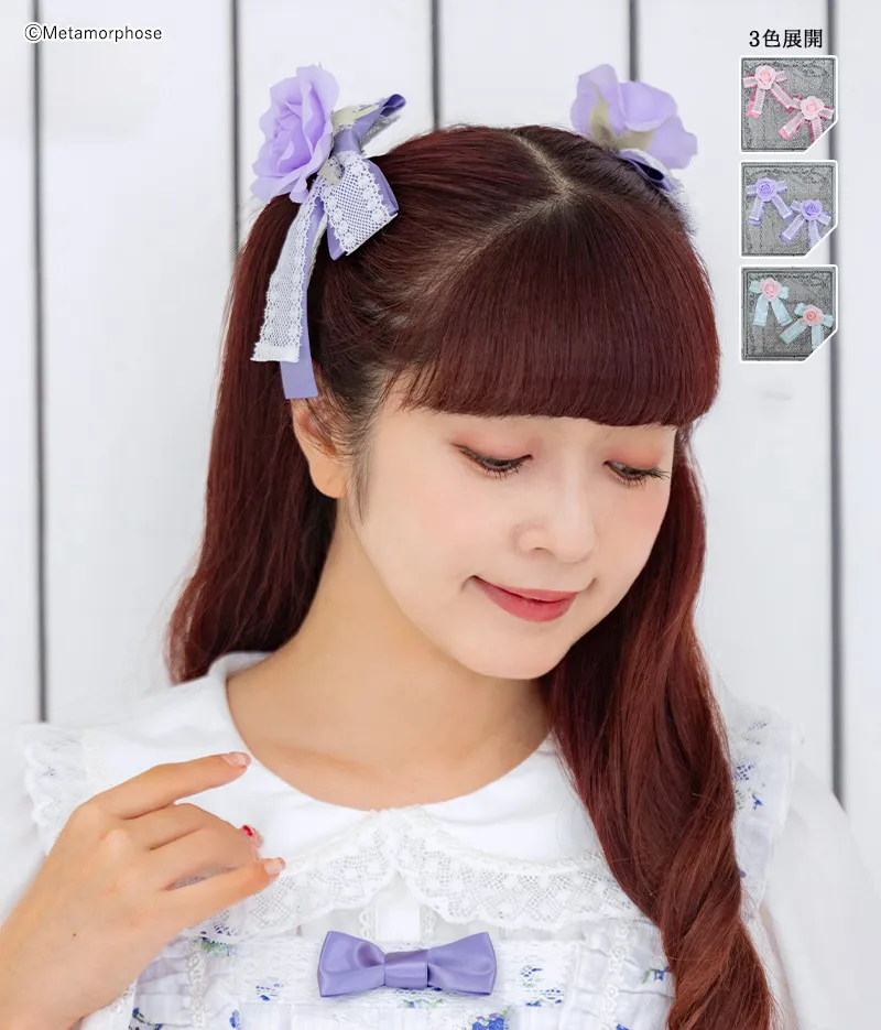 [Brand comment] The ribbon clips with the three-dimensional rose are perfect for the Maison des Roses -Beautiful Townscape- series. Please make your styling more romantic with the ones in your favorite color♪