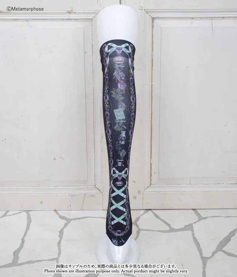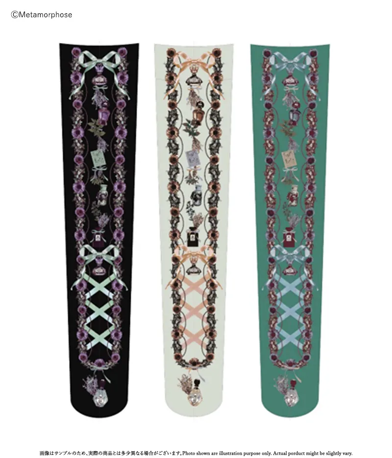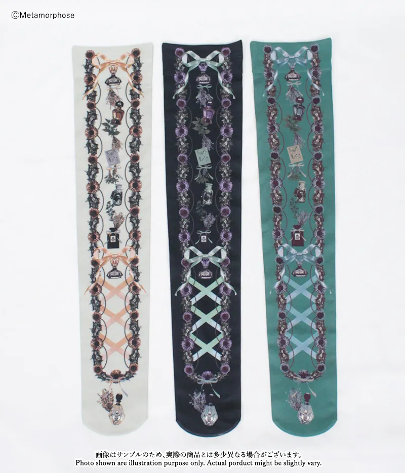 The printed over the knee socks designed to match the antique mood of the Secret Perfume Lab series♥ The motifs and lace up designs link to the series prints, giving you a gorgeous look from your feet!