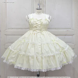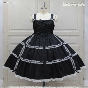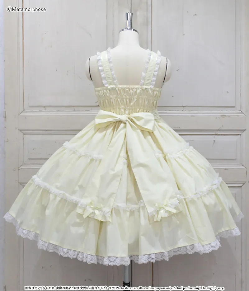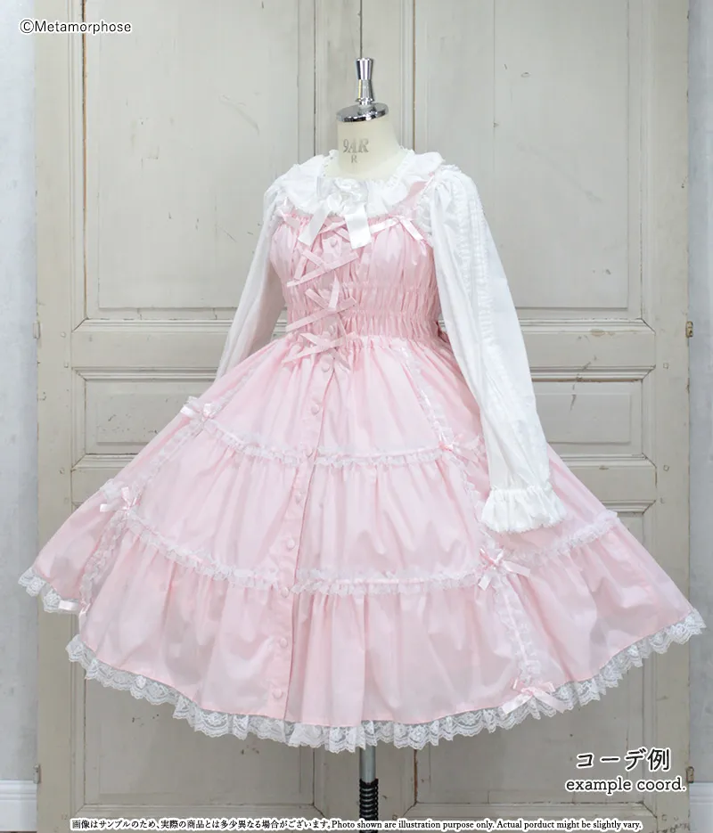 [Brand Comment] It is a 3 flounces tiered JSK plenty of volume ♡ The entire bodice has elastic shirring, making it comfortable to wear♪ Please enjoy a classic style with lots of cute ribbons and lace.