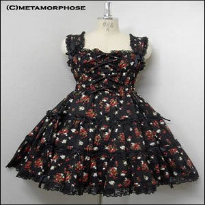 Shirring Tiered Ribbon Mini Length JSK (Strawberry Print)