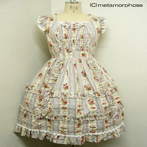 [Design notes] Partial shirring on front and back. Shoulder frills and petticoat are detachable. Shoulder straps cross in the back.
