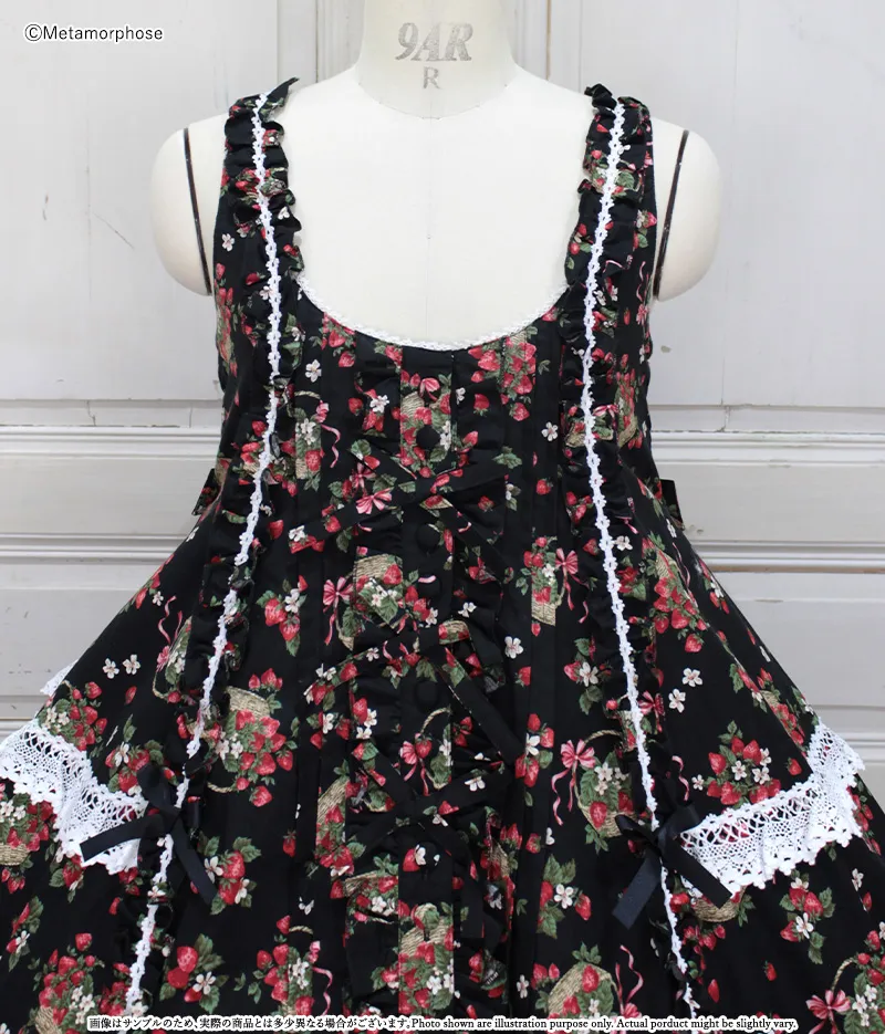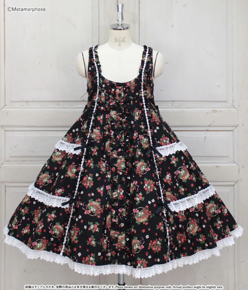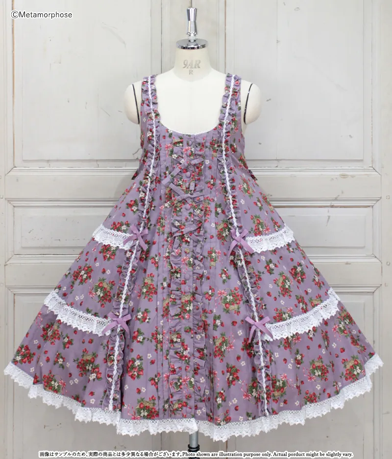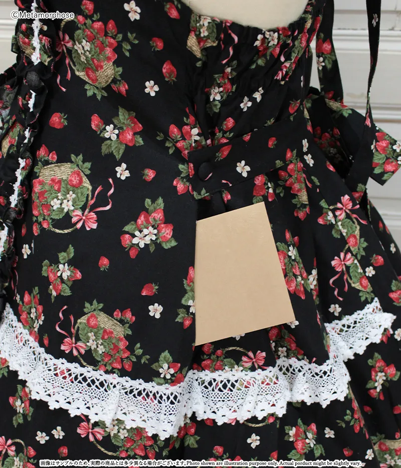 [Brand comment] This JSK features a charming strawberry print that makes you want to go out for a picnic with a basket♪ This gently flared JSK has a nostalgic mood ♥ Pay attention to the JSK details such as pintuck design and main frills which are made of the main fabric! The front buttons can be unbuttoned, so you can enjoy a layered look with a skirt underneath♪