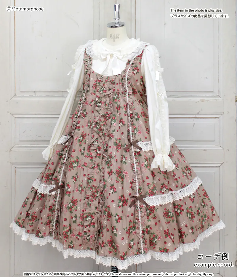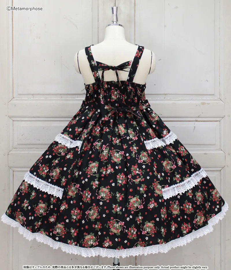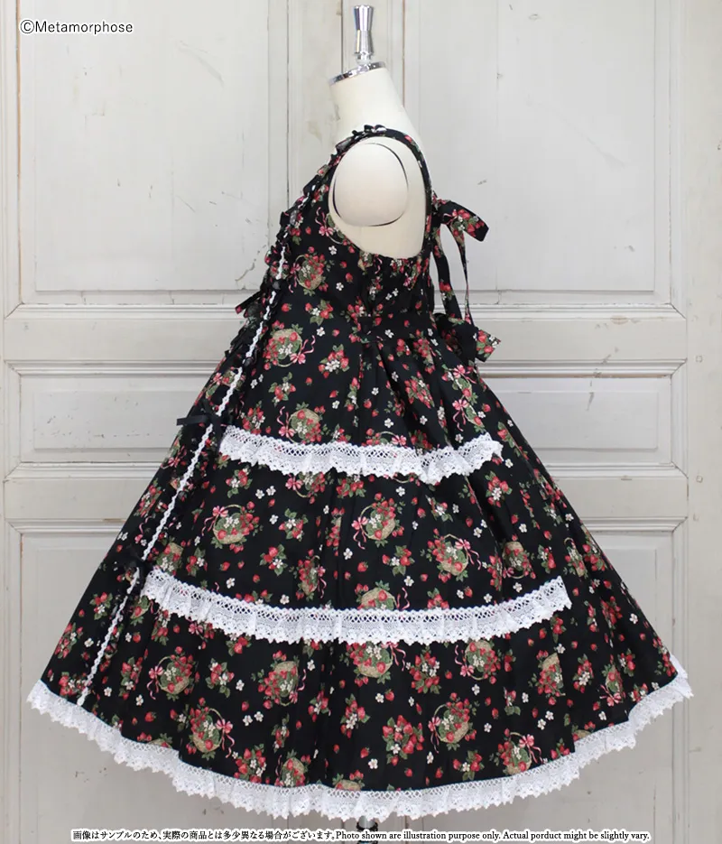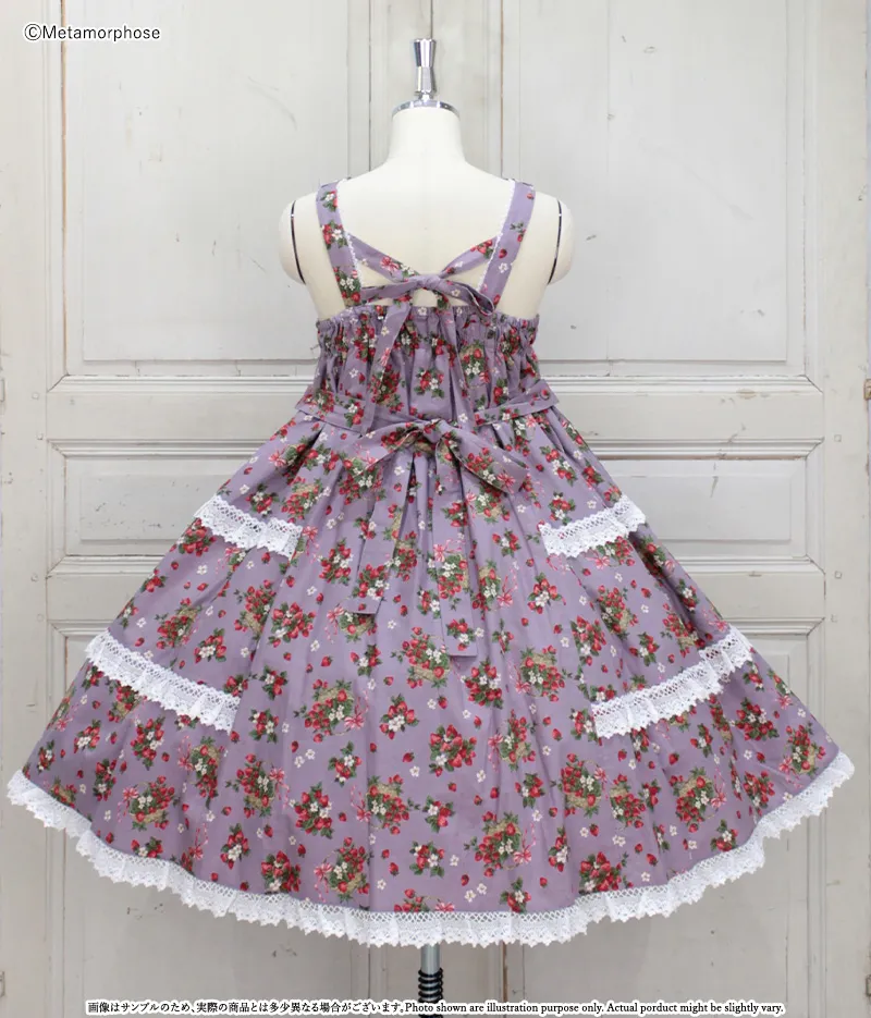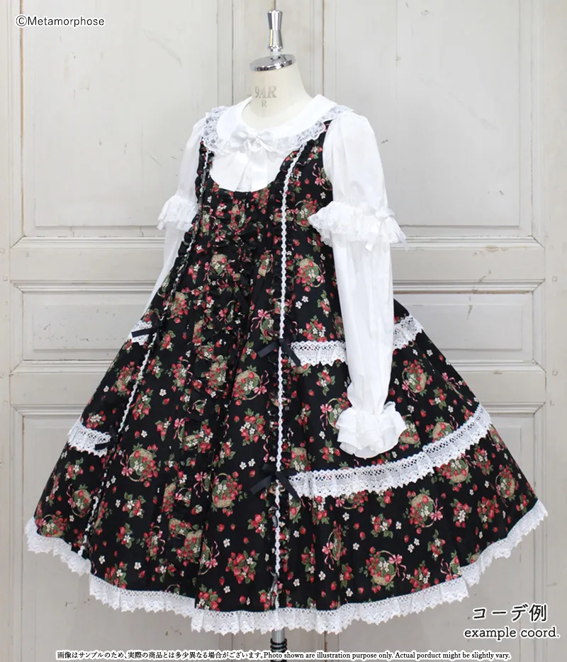 [Brand comment] This JSK features a charming strawberry print that makes you want to go out for a picnic with a basket♪ This gently flared JSK has a nostalgic mood ♥ Pay attention to the JSK details such as pintuck design and main frills which are made of the main fabric! The front buttons can be unbuttoned, so you can enjoy a layered look with a skirt underneath♪