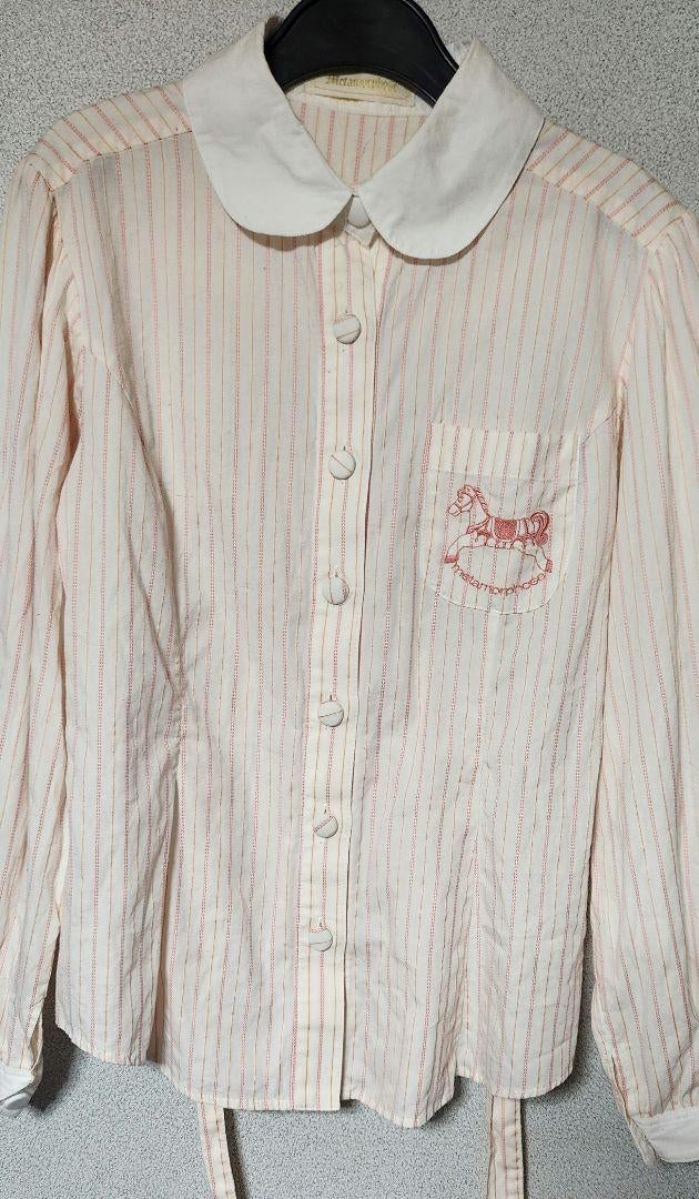 木馬刺繍入りストライプブラウス