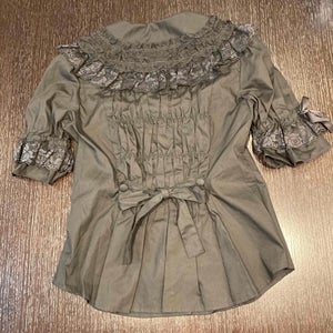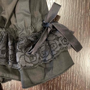 [Material] Cotton broadcloth, cotton blend raschel lace, satin ribbon [Styling] Button up front, detachable waist ties