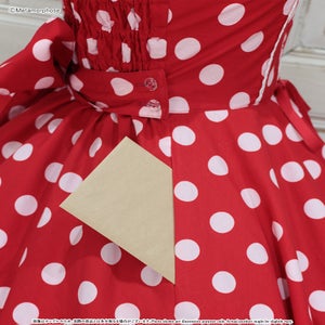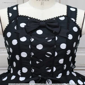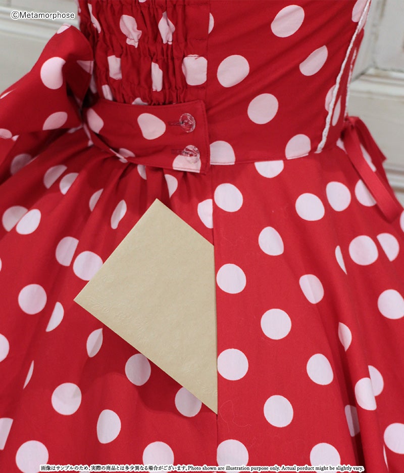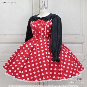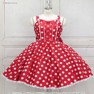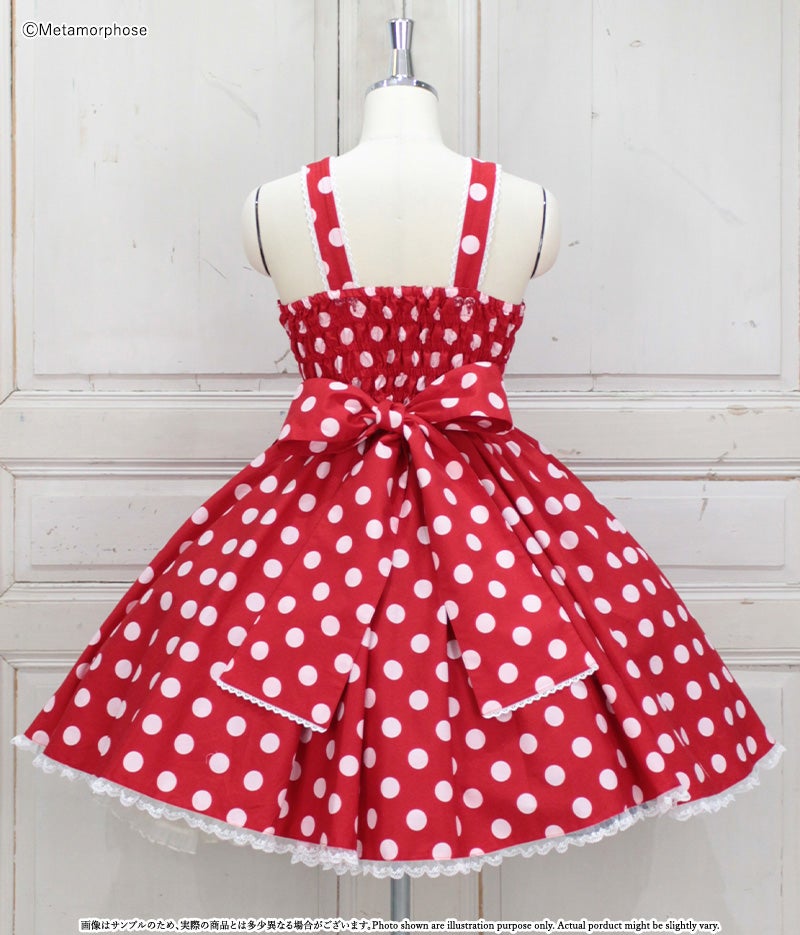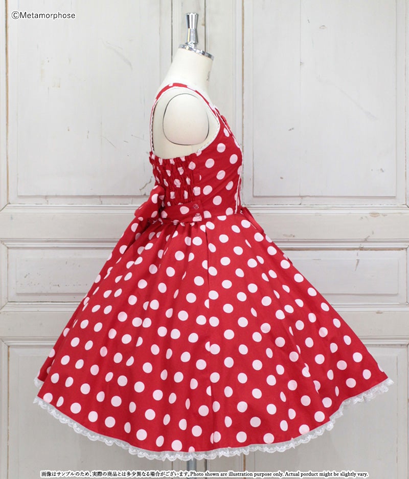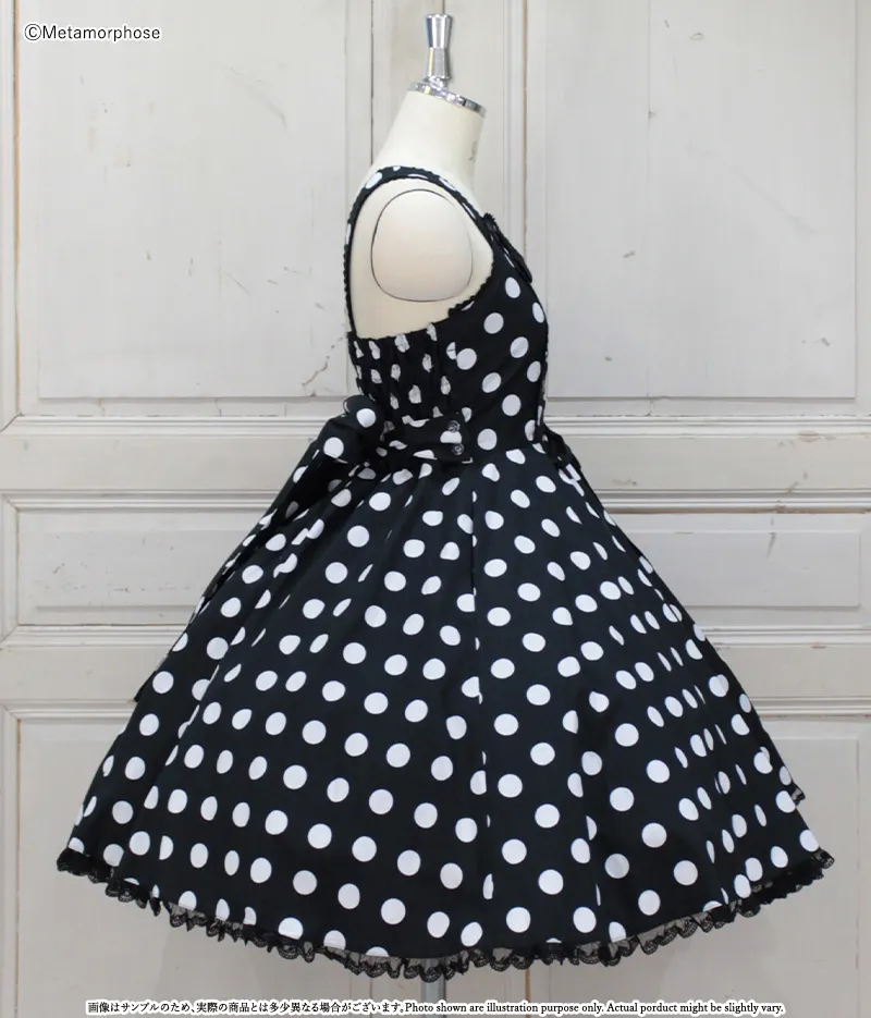 The polka dot pattern is just like syrup ♡ The ribbon on the chest and the lace-up design give this JSK a sweet look.The softly flared circular skirt is also lovely!