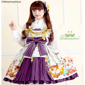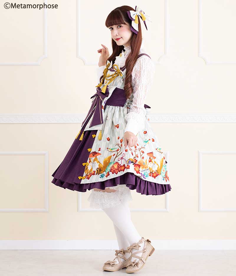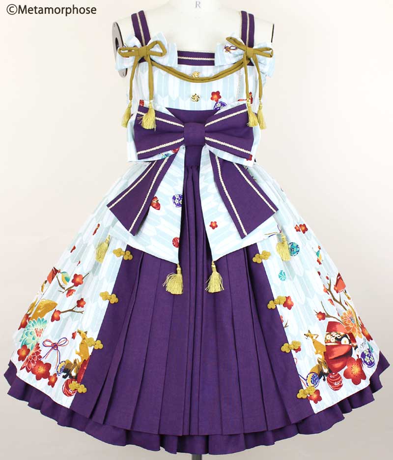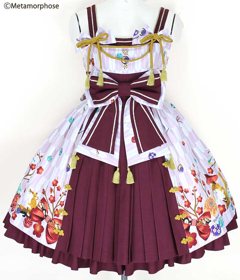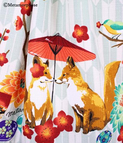 [Brand Comment] Beautiful birds tell you that spring is coming. Foxes are celebrating a beautiful season coming in a gentle air. The pleated skirt part makes this dress more attractive. It's like a Hakama but dress at the same time. It will be your one and only dress.