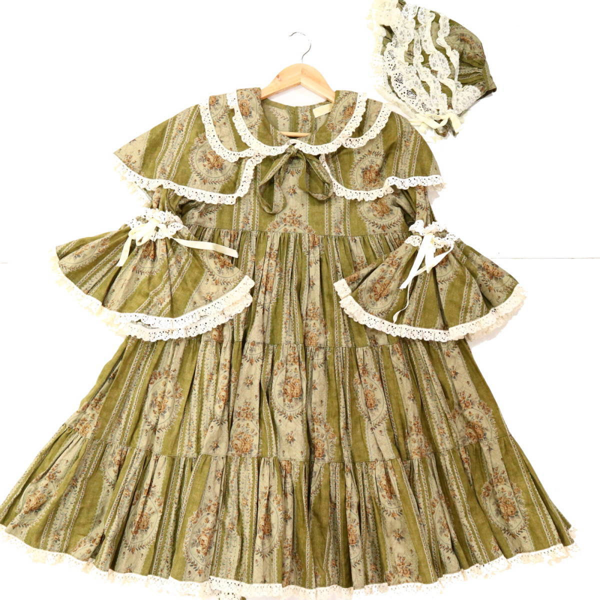 ブーケ柄ラッパ袖ワンピース(アームカバー付き)